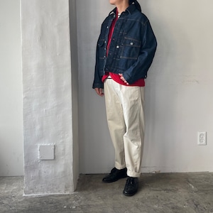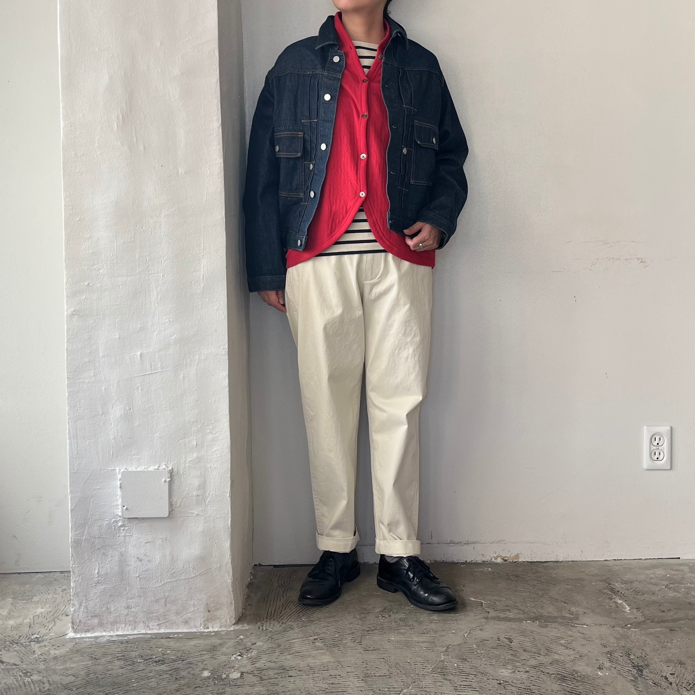 秋・春の端境期に、セットアップとしてデニムパンツと合わせたり