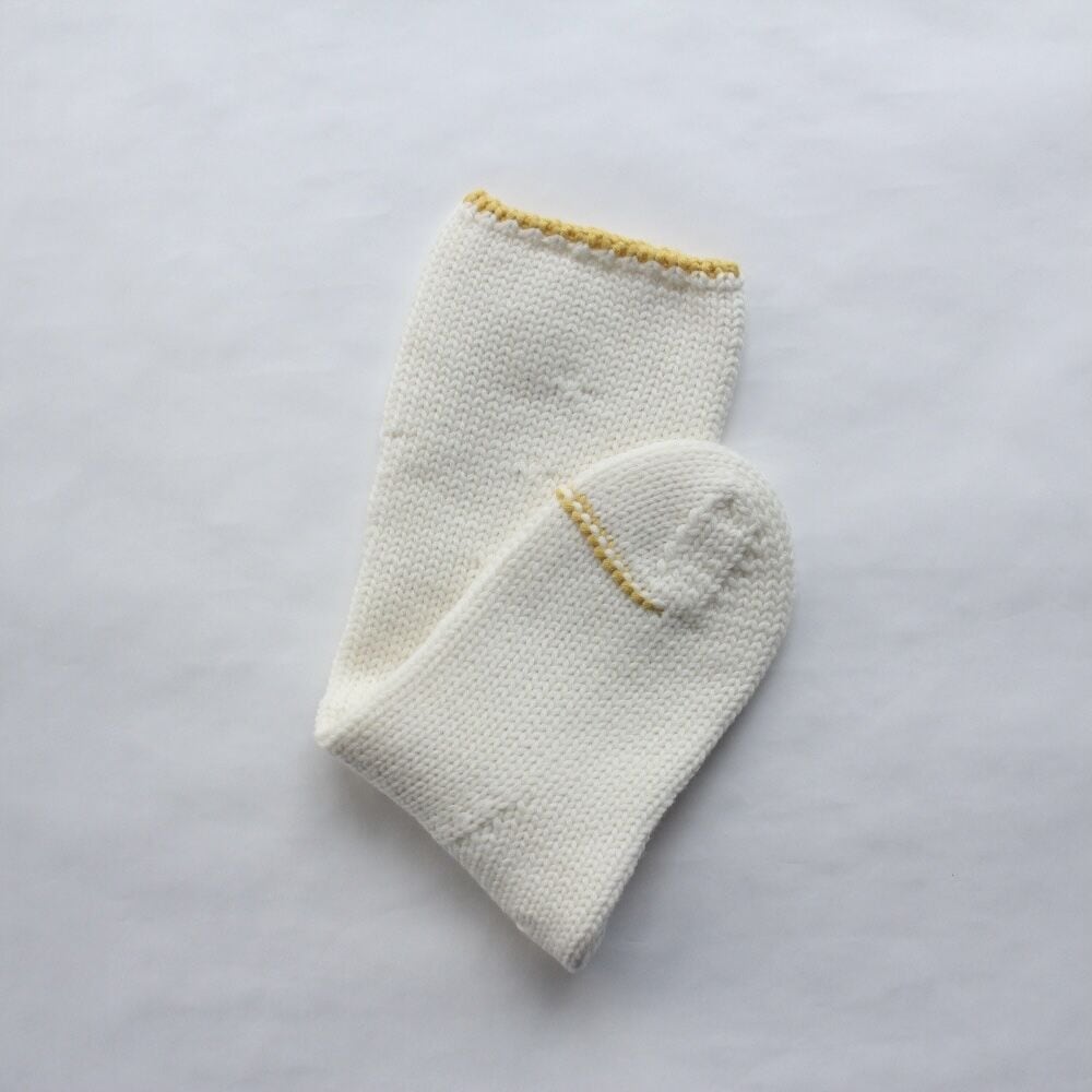 オリジナルの糸を用いて、一足一足手編みで作られているウールの靴下