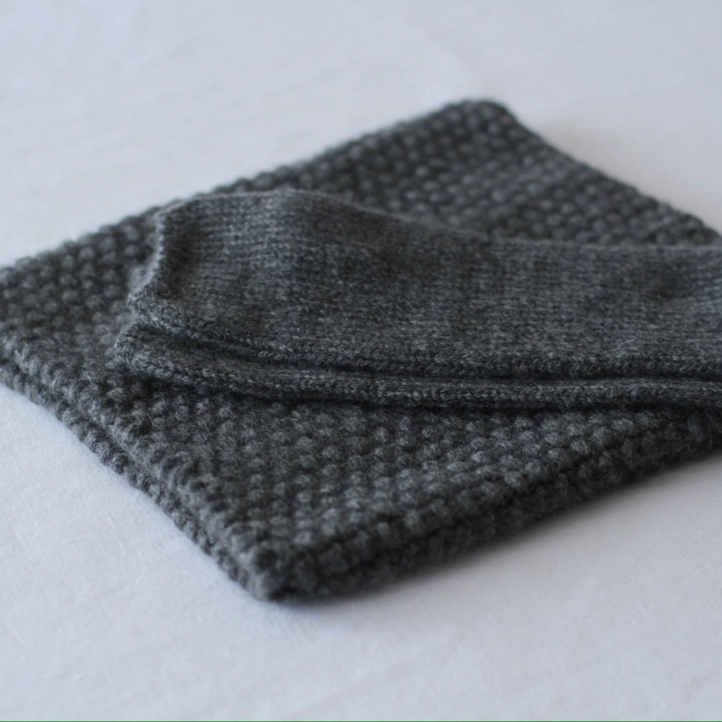 オリジナルの糸を用いて、一点一点手編みで作られているカシミヤのアームウォーマー