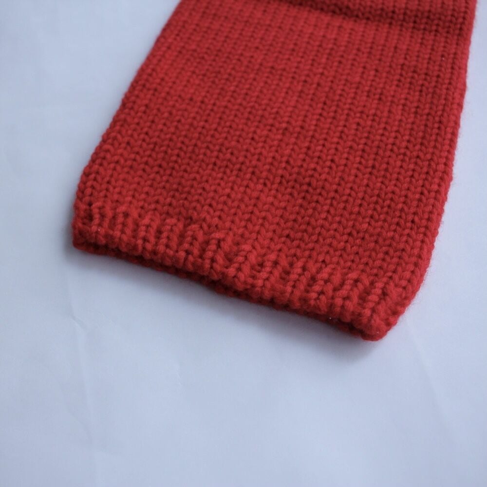 オリジナルの糸を用いて、一足一足手編みで作られているウールのレッグウォーマー