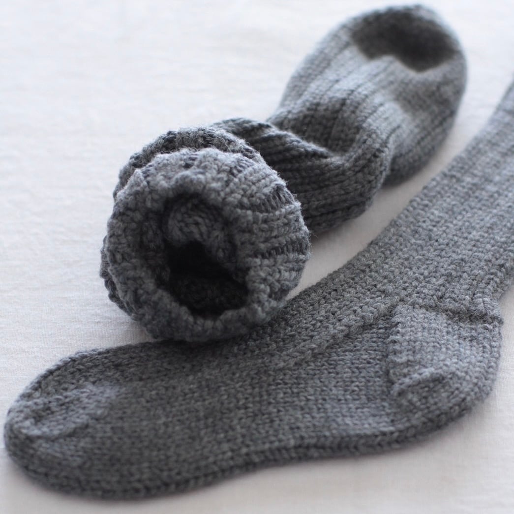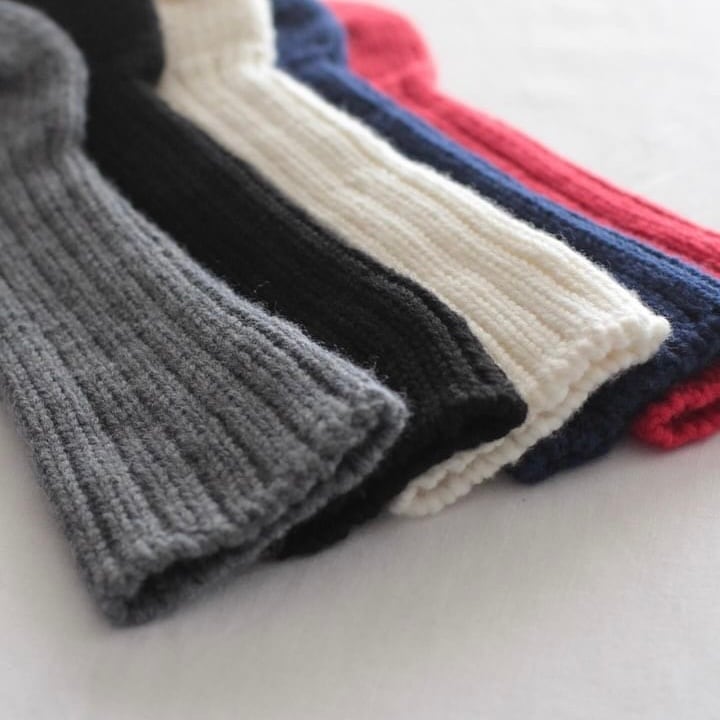 オリジナルの糸を用いて、一足一足手編みで作られているウールの新作リブソックス