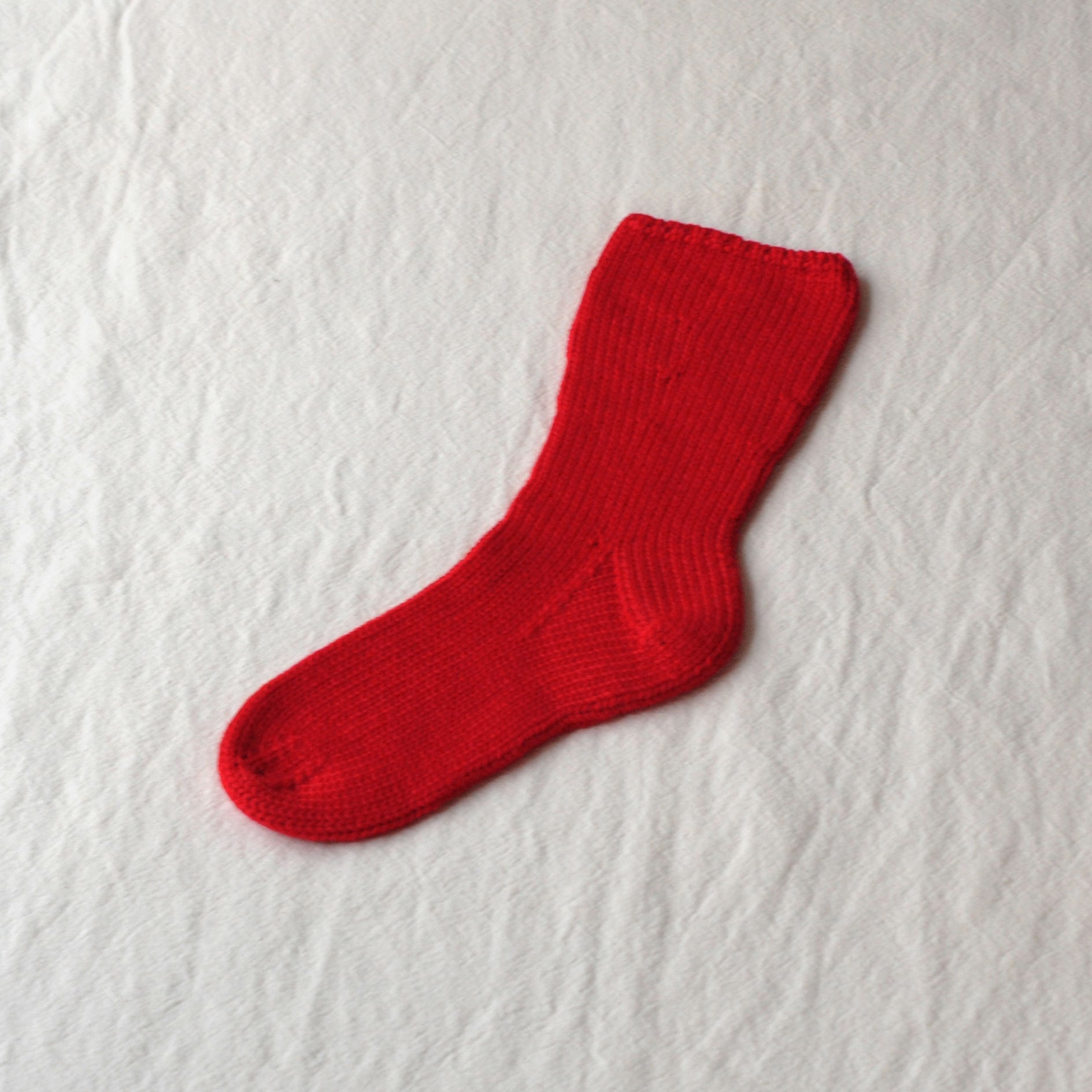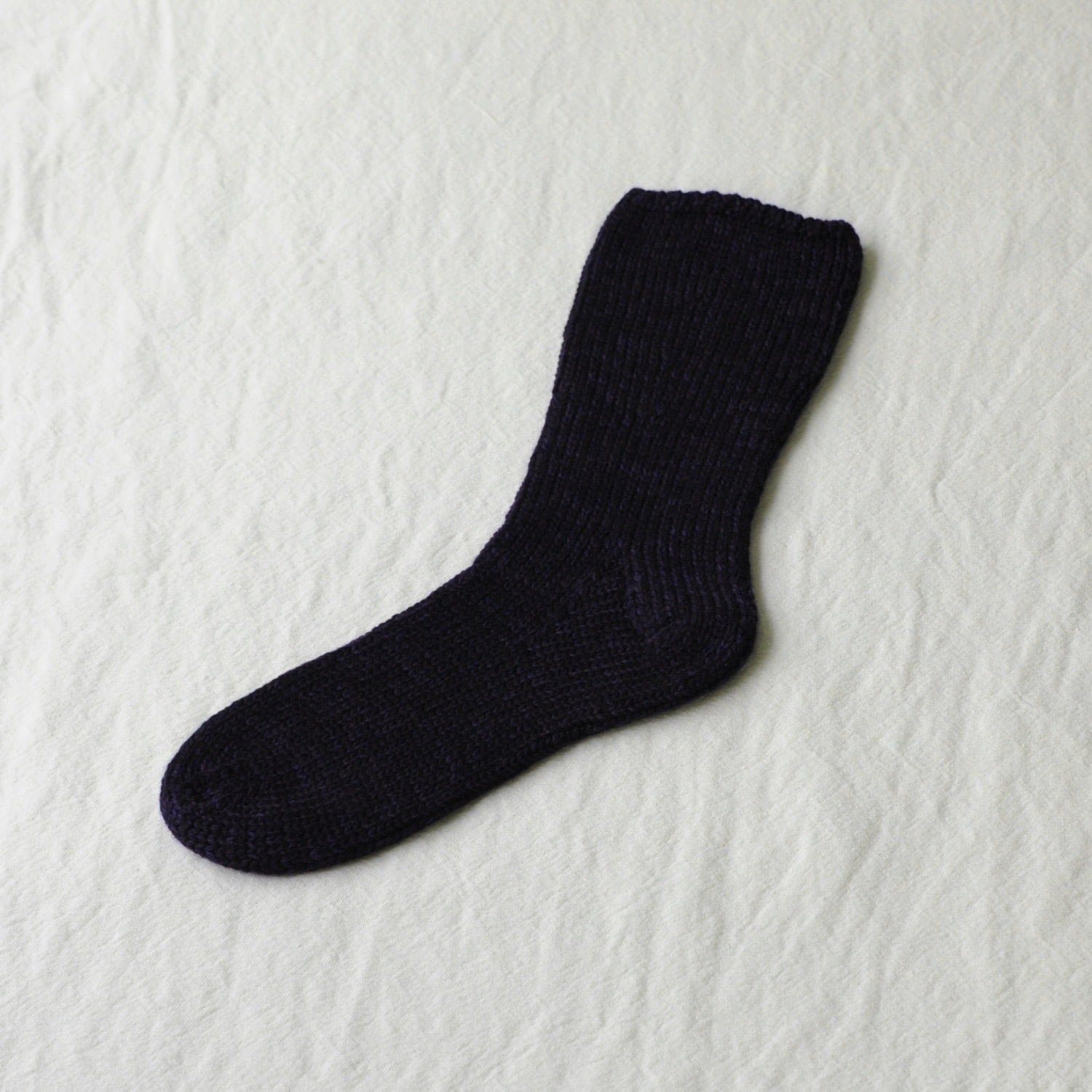 オリジナルの糸を用いて、一足一足手編みで作られているウールの靴下