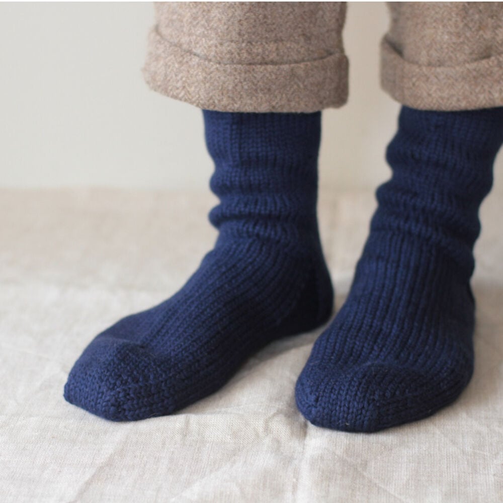 オリジナルの糸を用いて、一足一足手編みで作られているウールの靴下