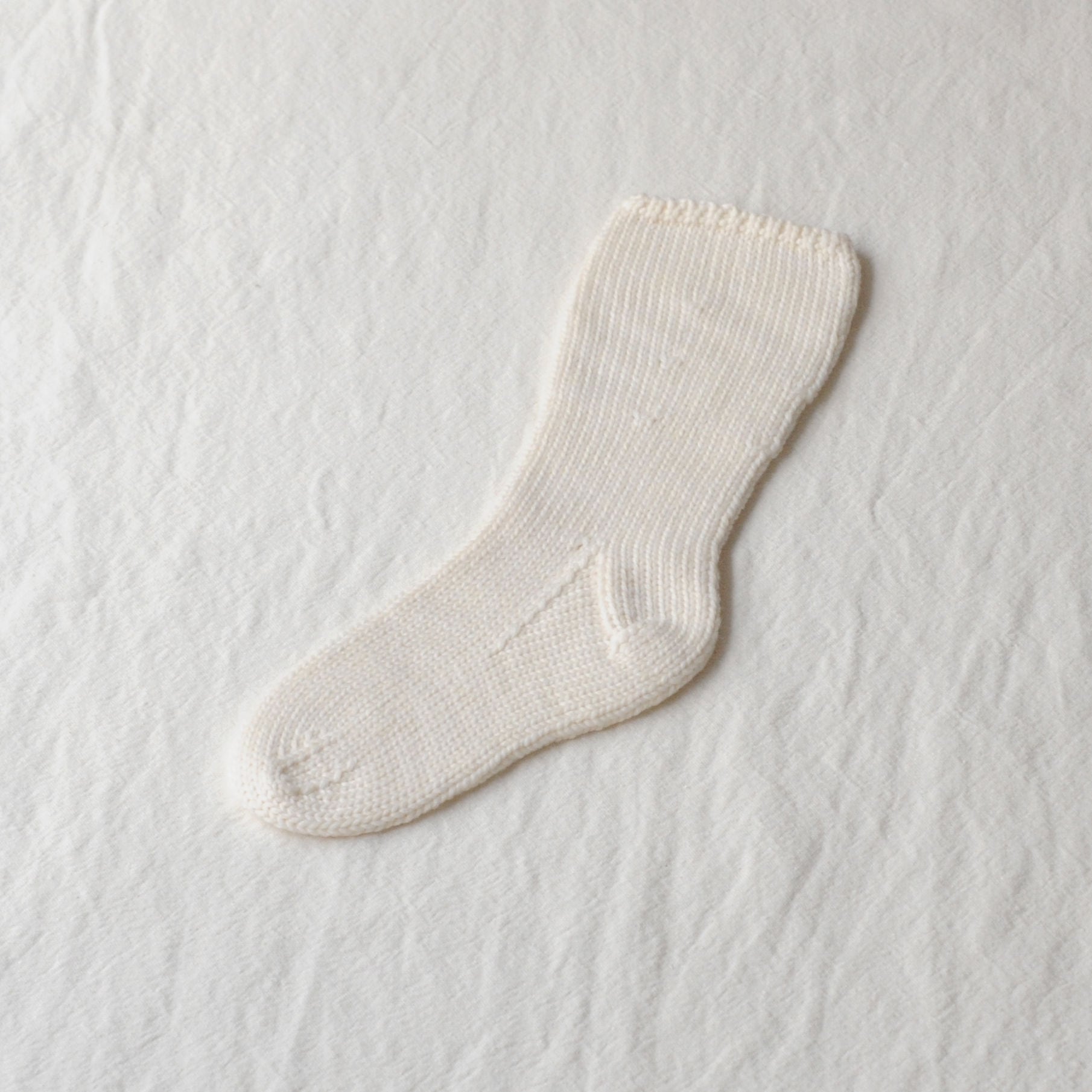 オリジナルの糸を用いて、一足一足手編みで作られているウールの靴下