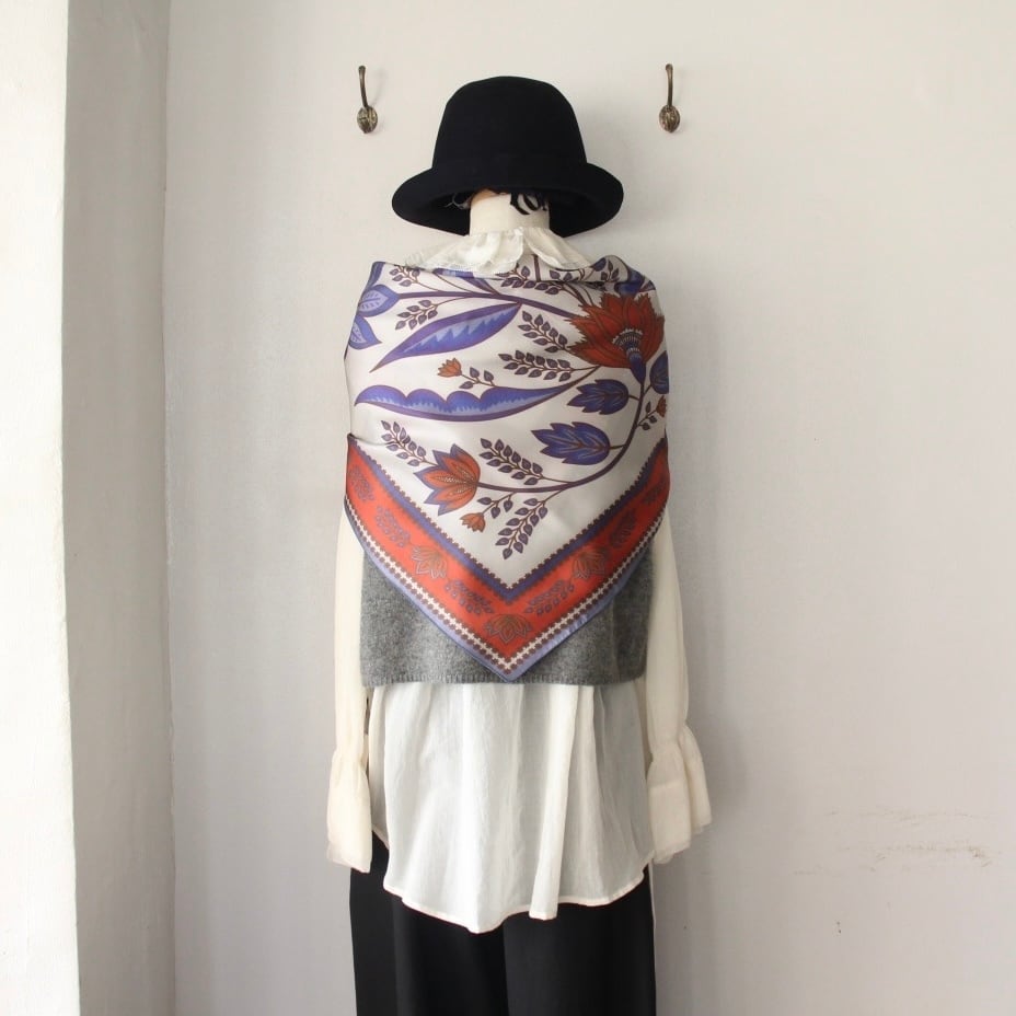シルク100%の、なめらかで美しい光沢感が魅力のスカーフ