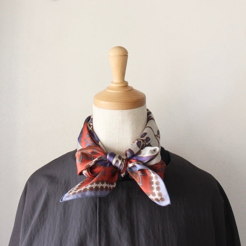 高密度に織り上げたシルク100%のスカーフは、耐久性もあり季節を問わずご使用いただけます