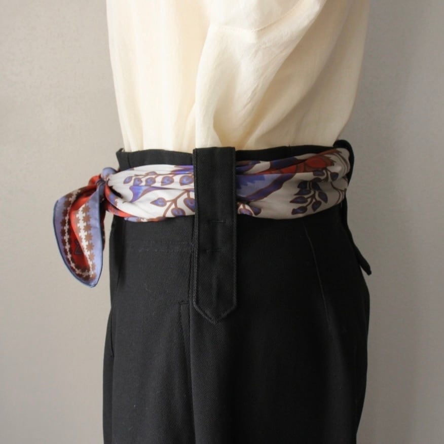 首元に巻くだけでなく、手首やバッグに巻くと、スタイリングのアクセントとなり