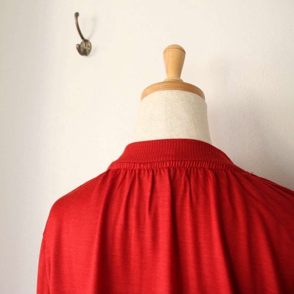 衿ぐりにギャザーを入れ柔らかくふんわりとしたシルエットに
