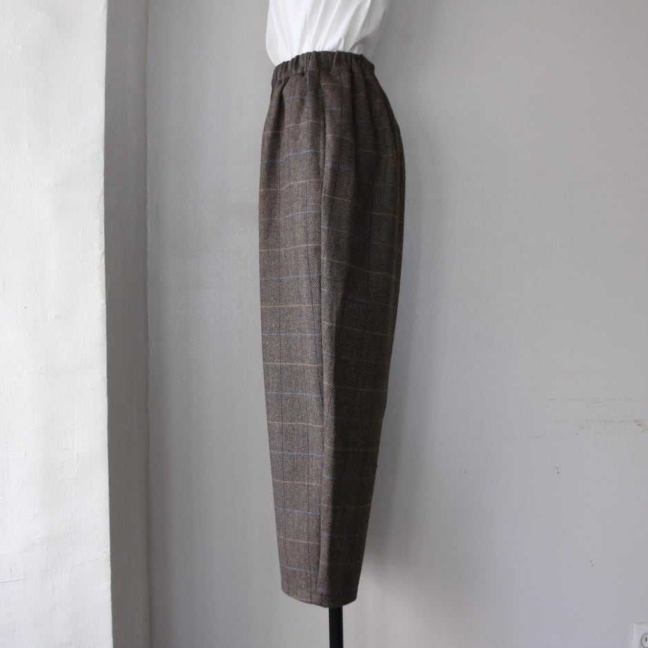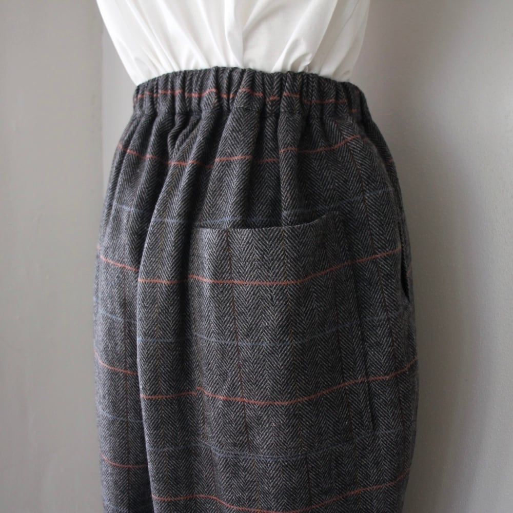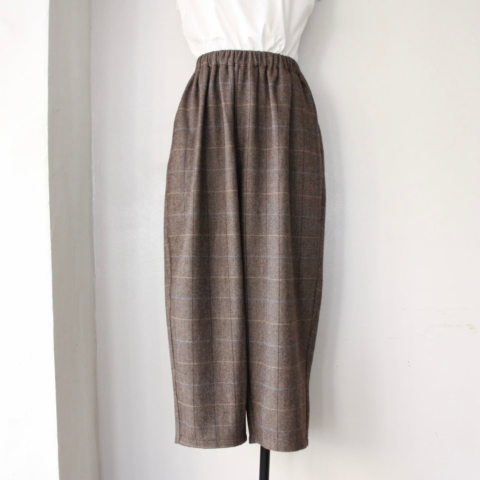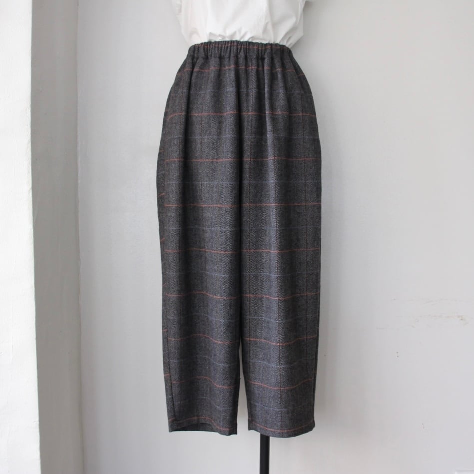 Houttuynia cordata ヘリンボーンチェック テーパードパンツ