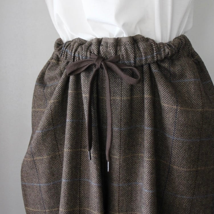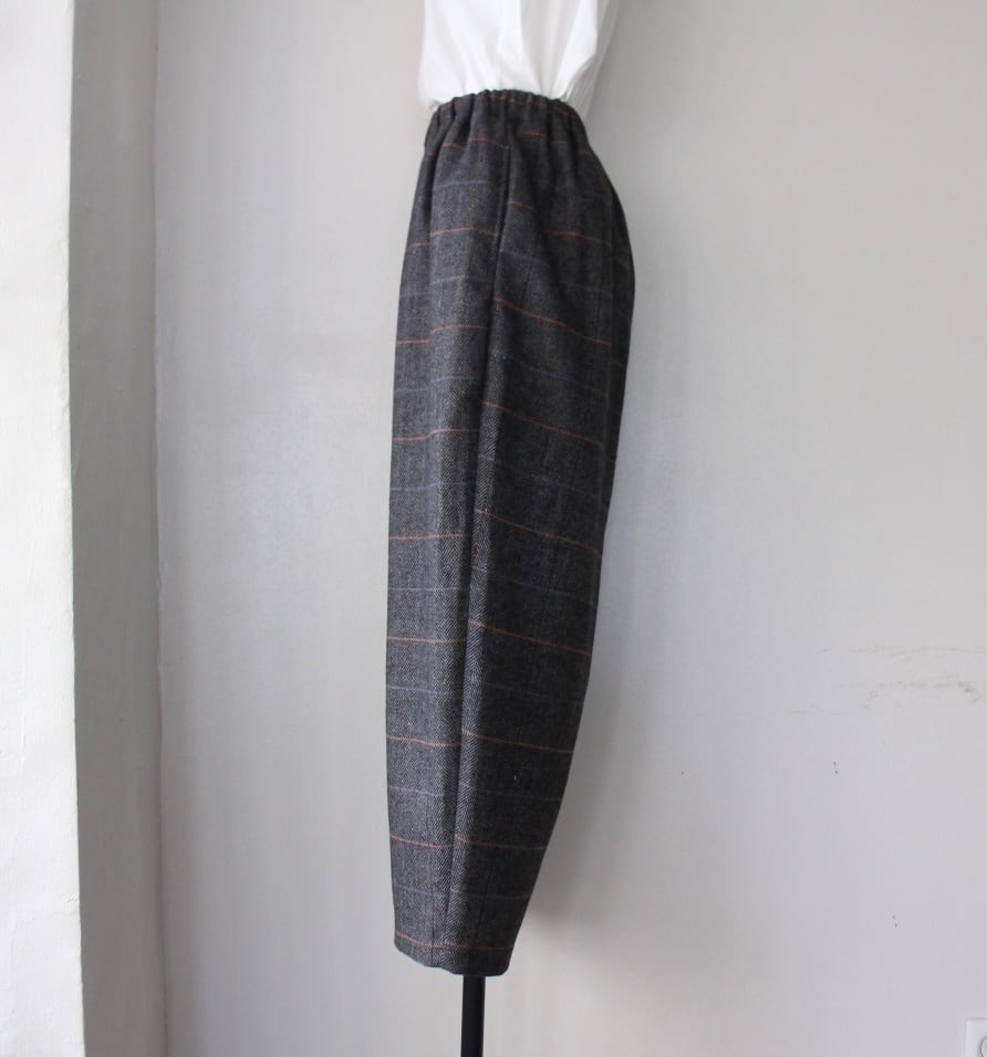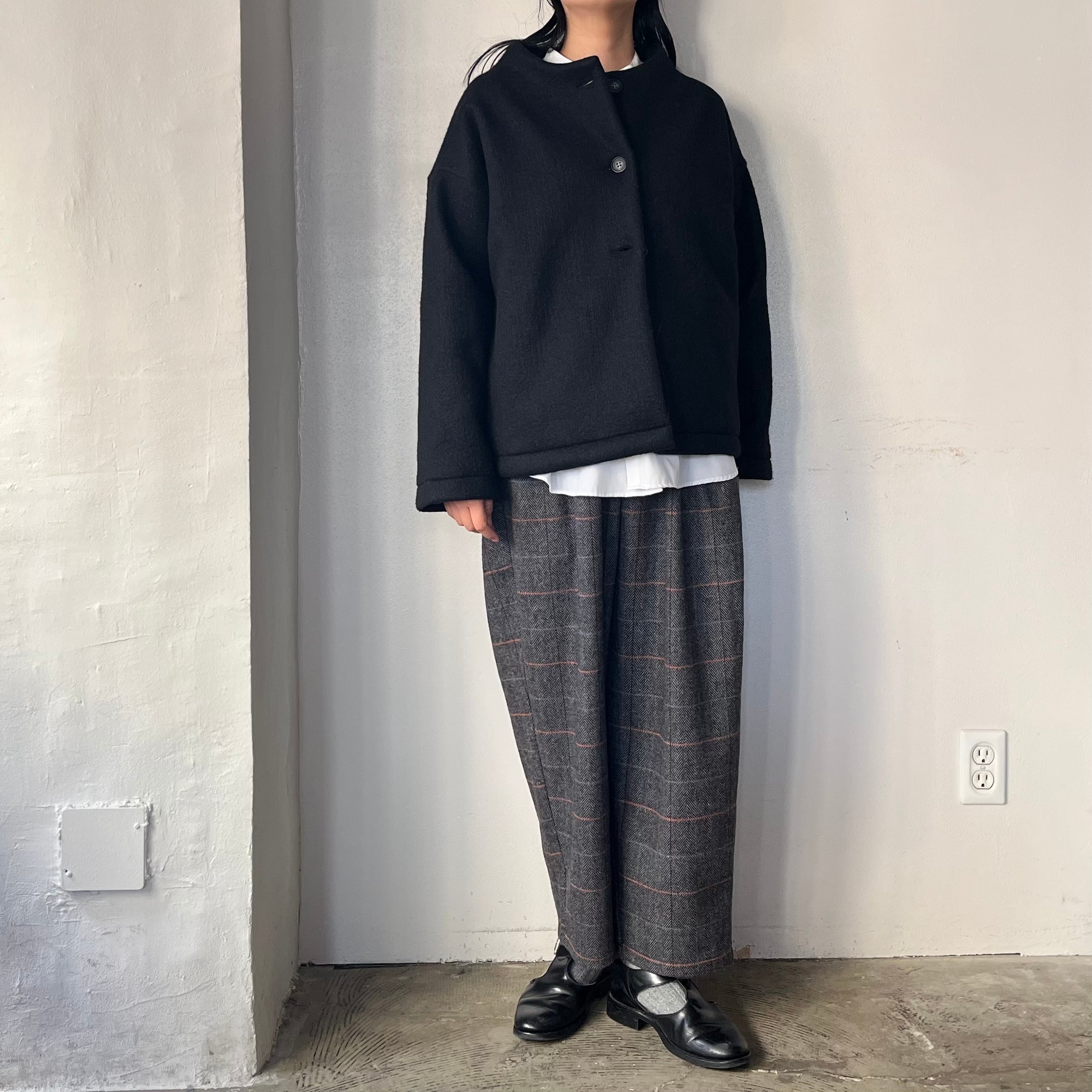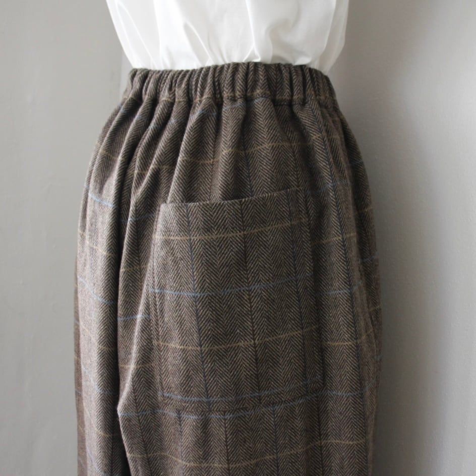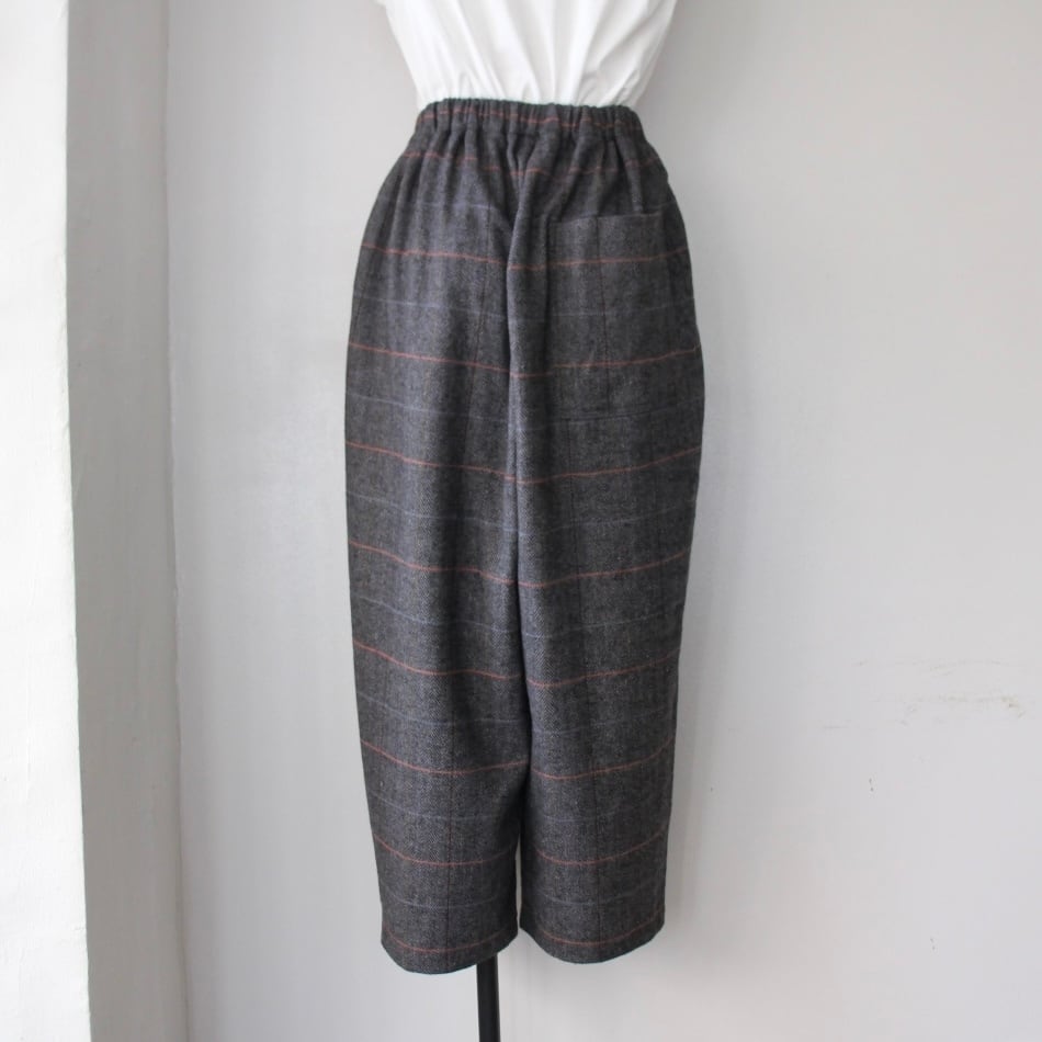 Houttuynia cordata ヘリンボーンチェック テーパードパンツ