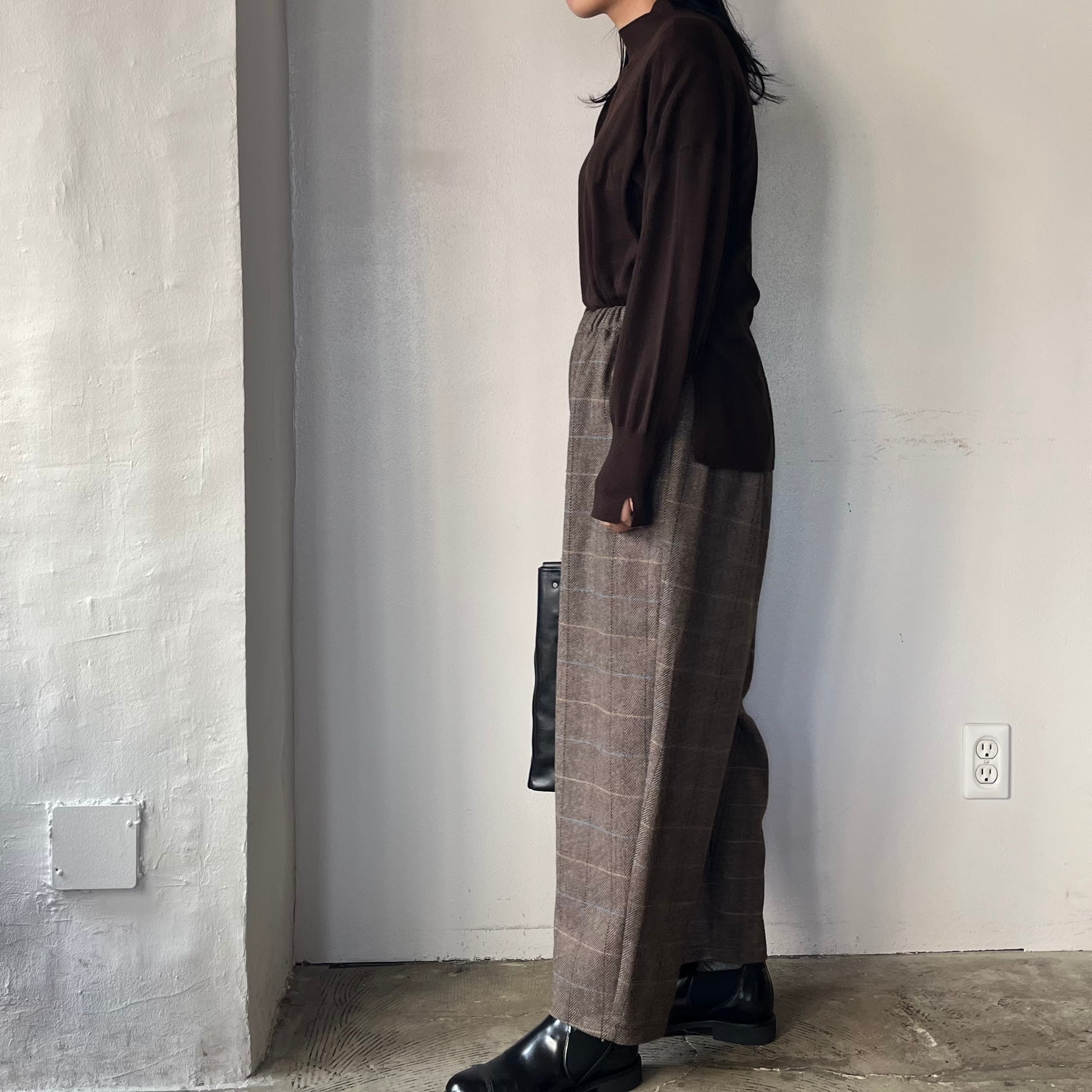 シックな柄ものパンツは冬のコーディネートを盛り上げてくれるコト間違いなしです