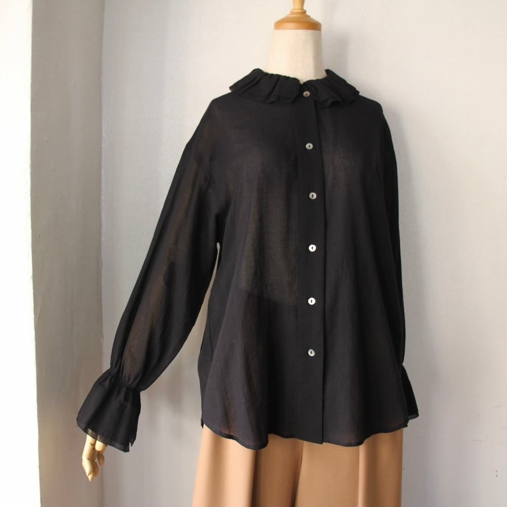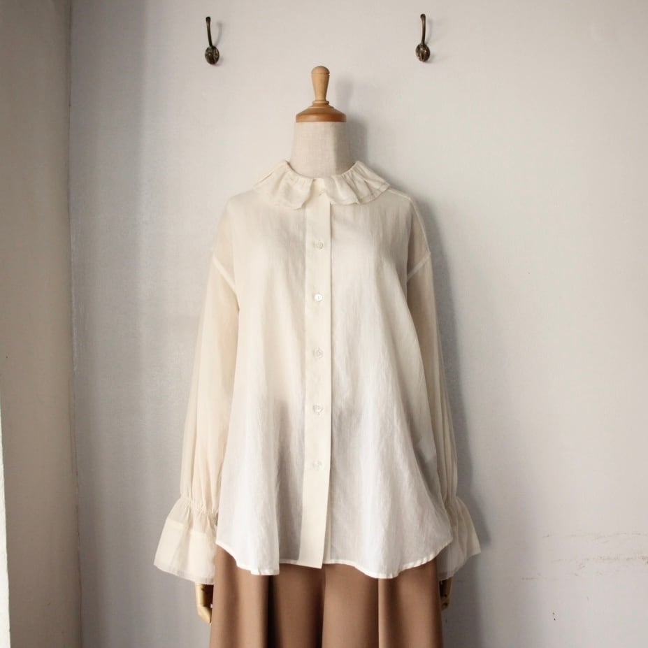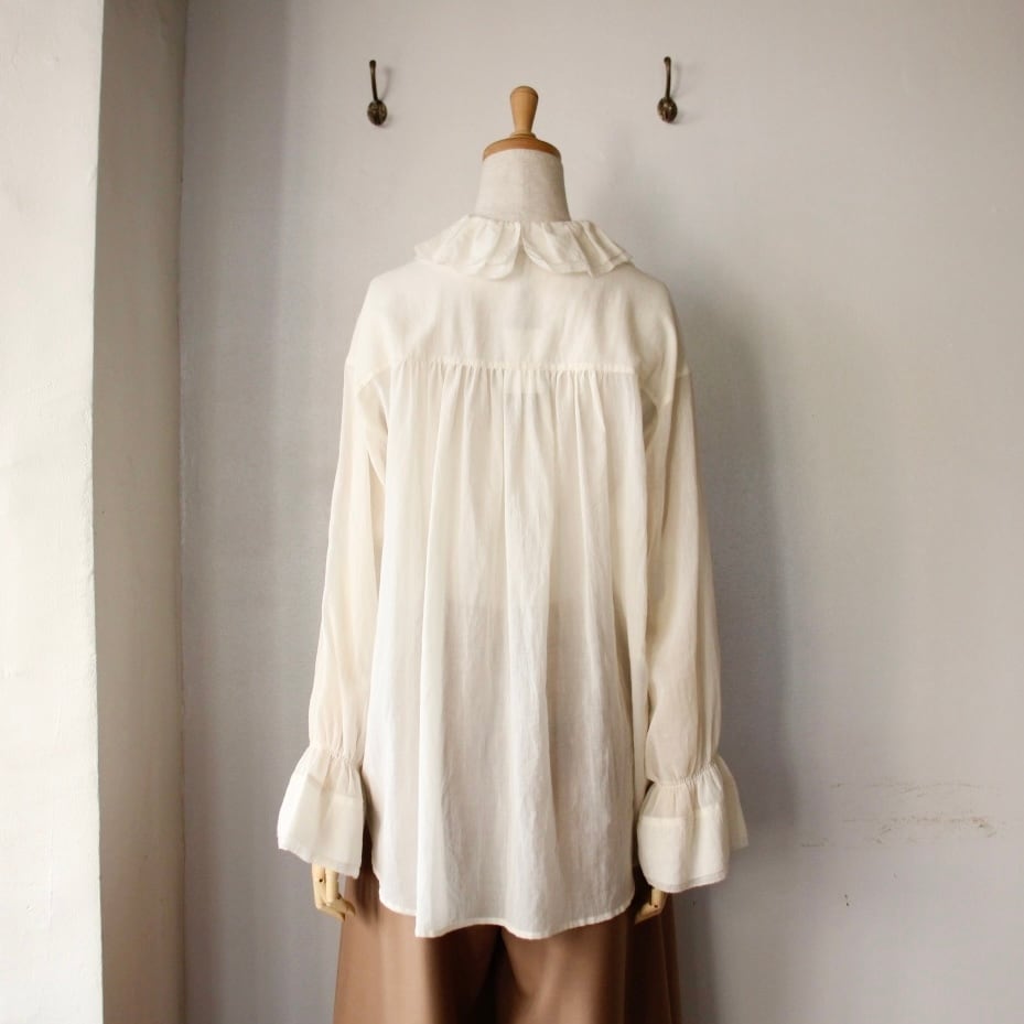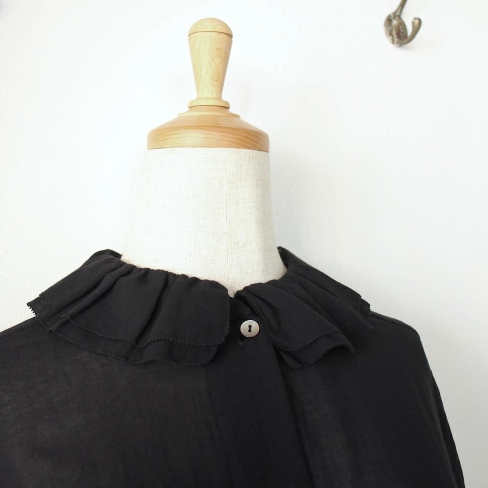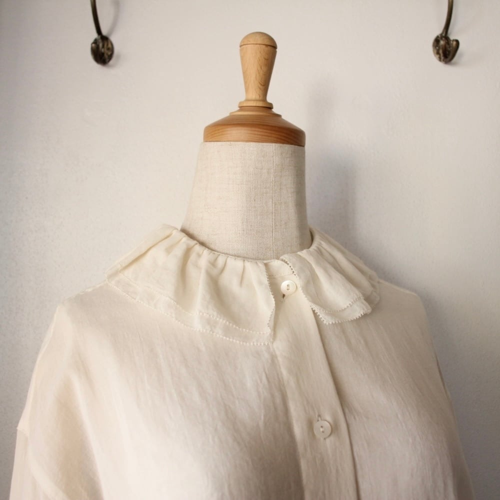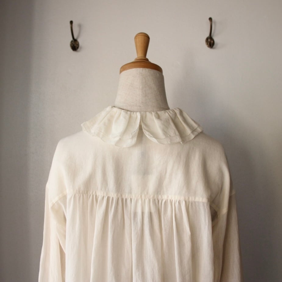 後ろ切り替えに入った細かいギャザー、二重襟と