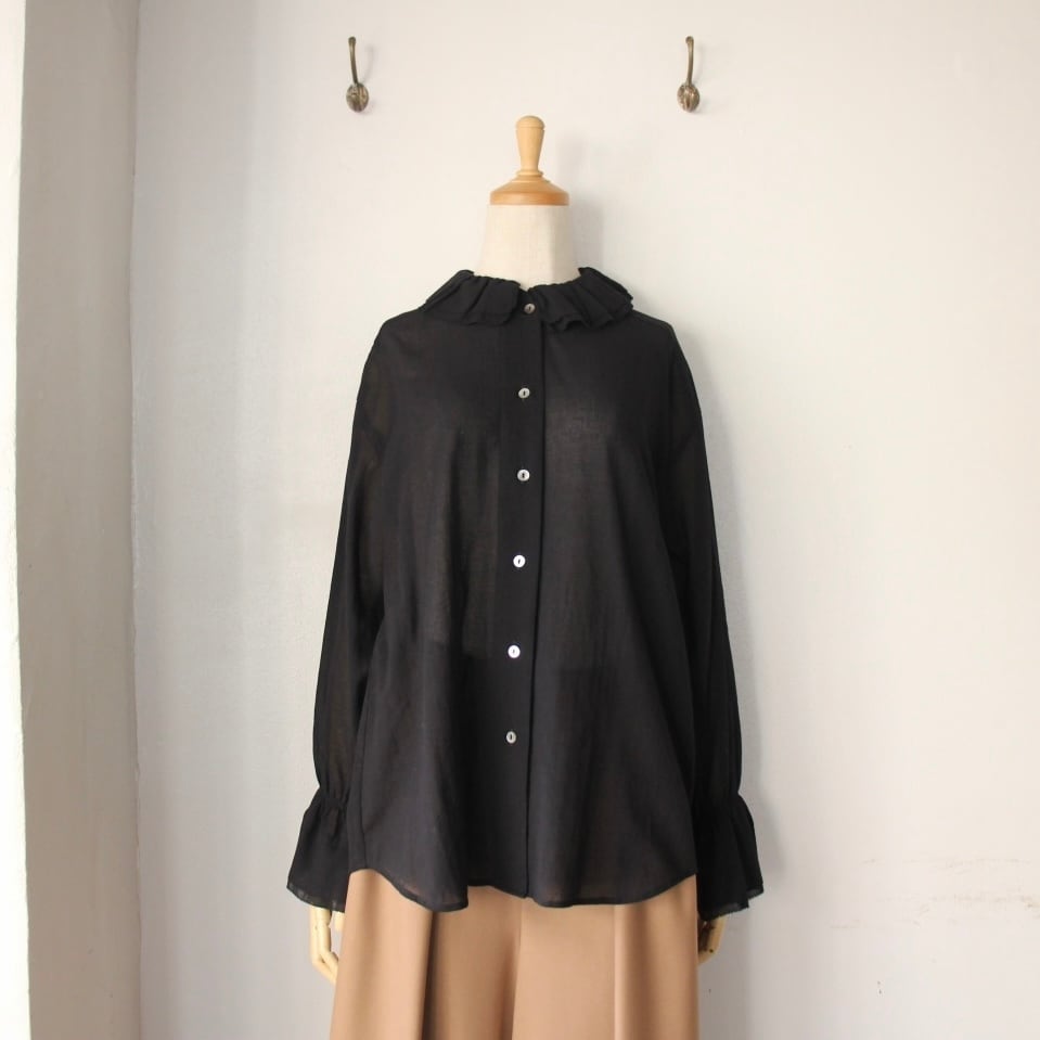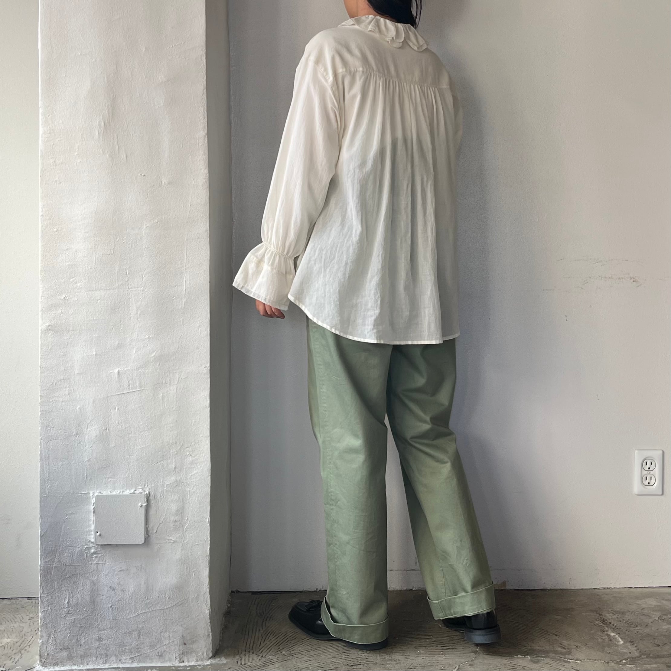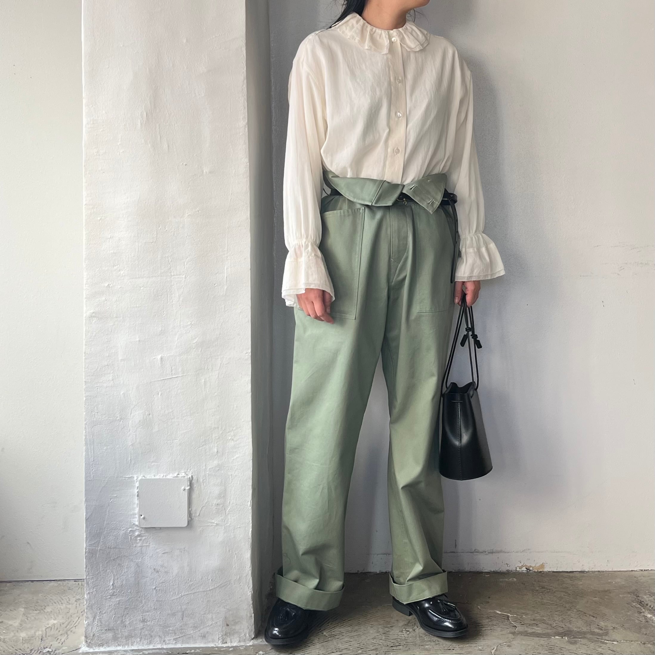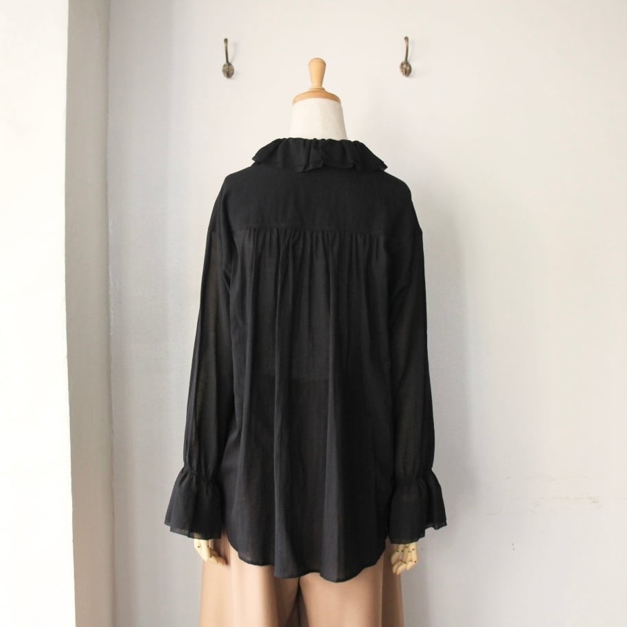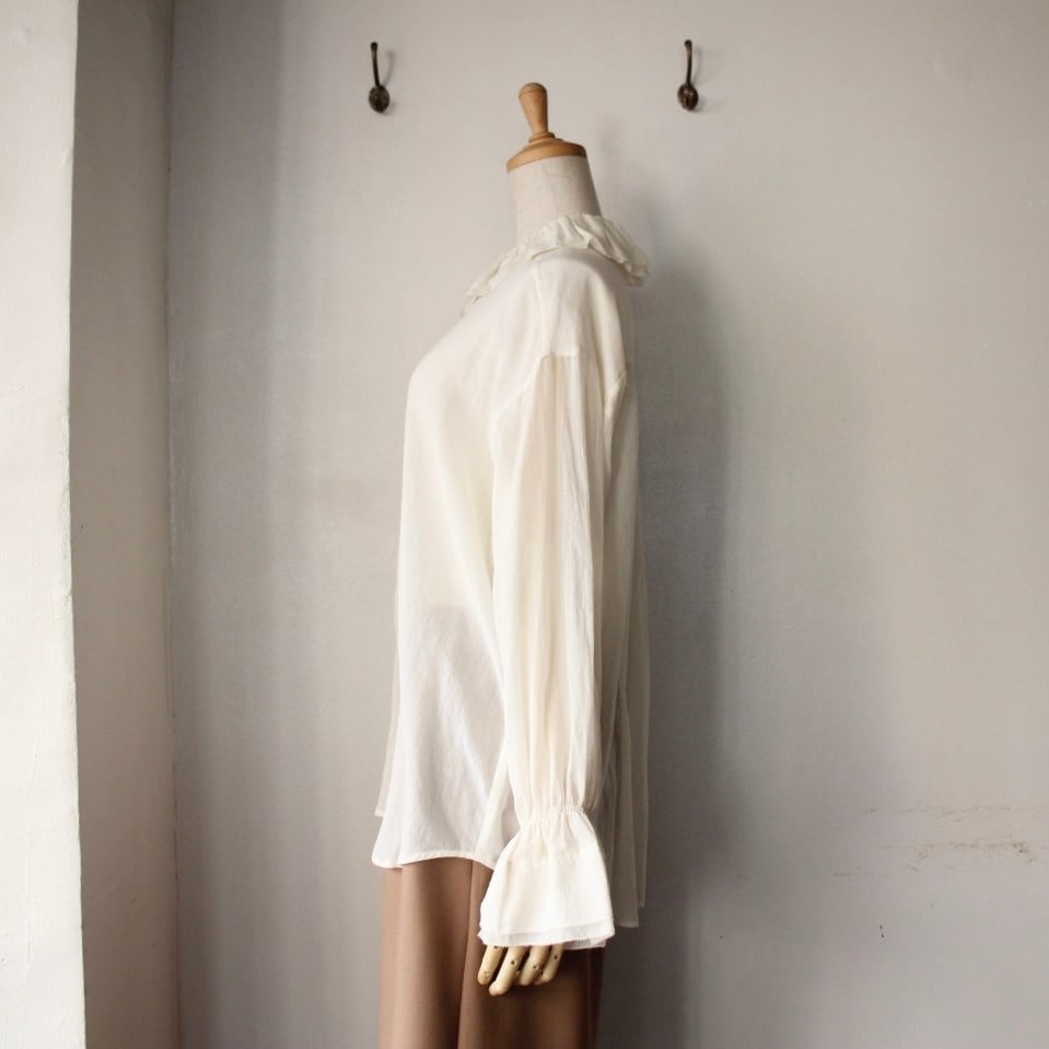 後ろ切り替えに入った細かいギャザー、二重襟と