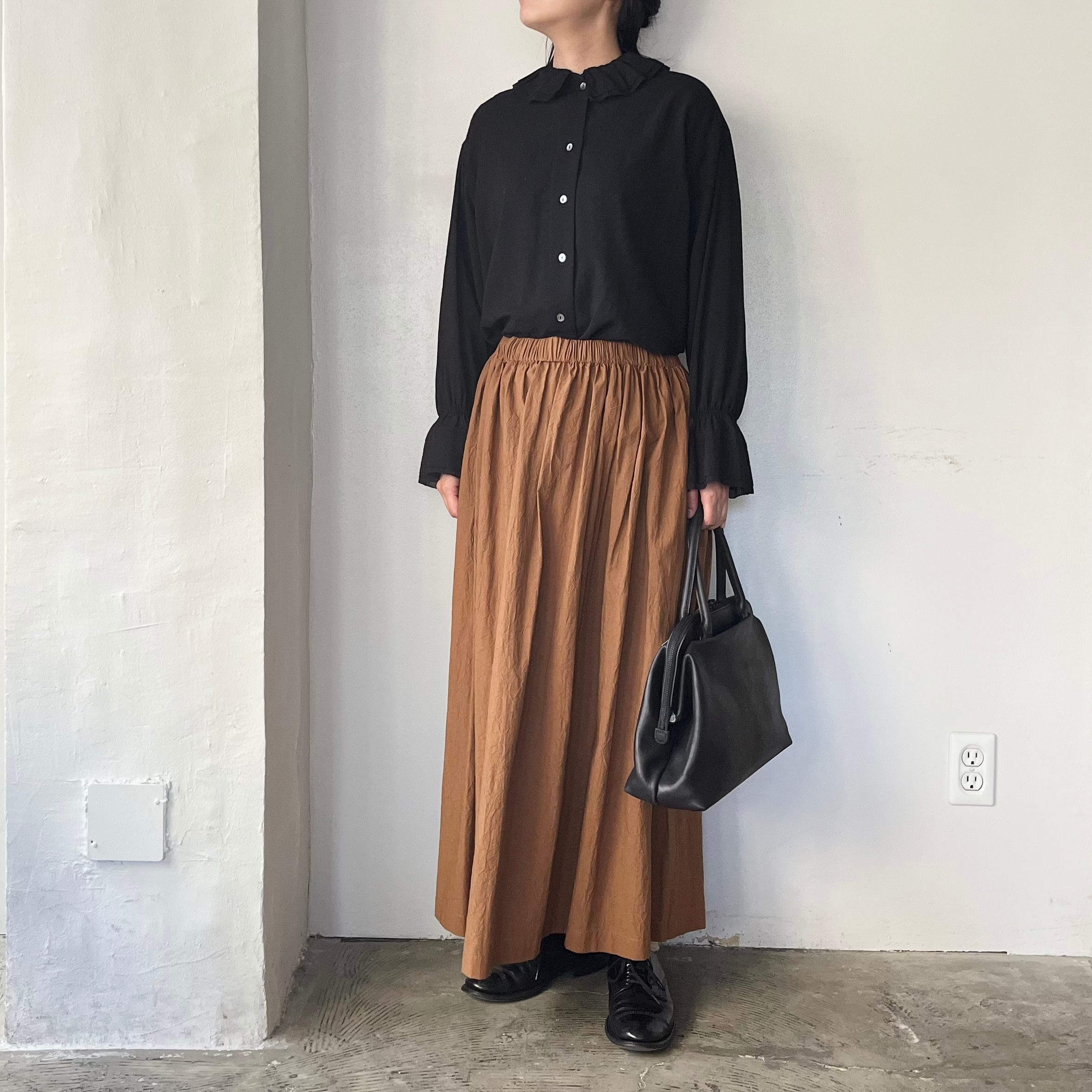 ふんわりしたスカートで合わせたフェミニンスタイル、