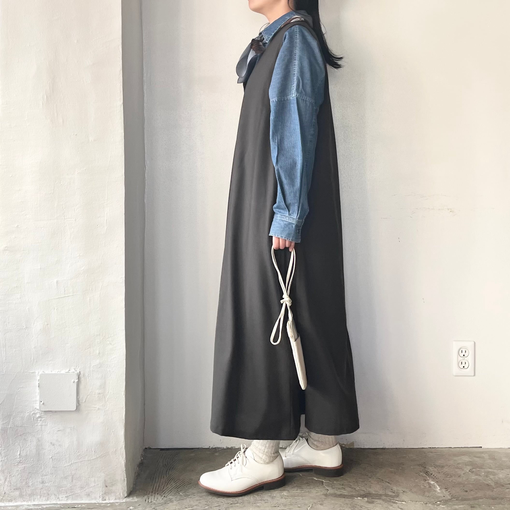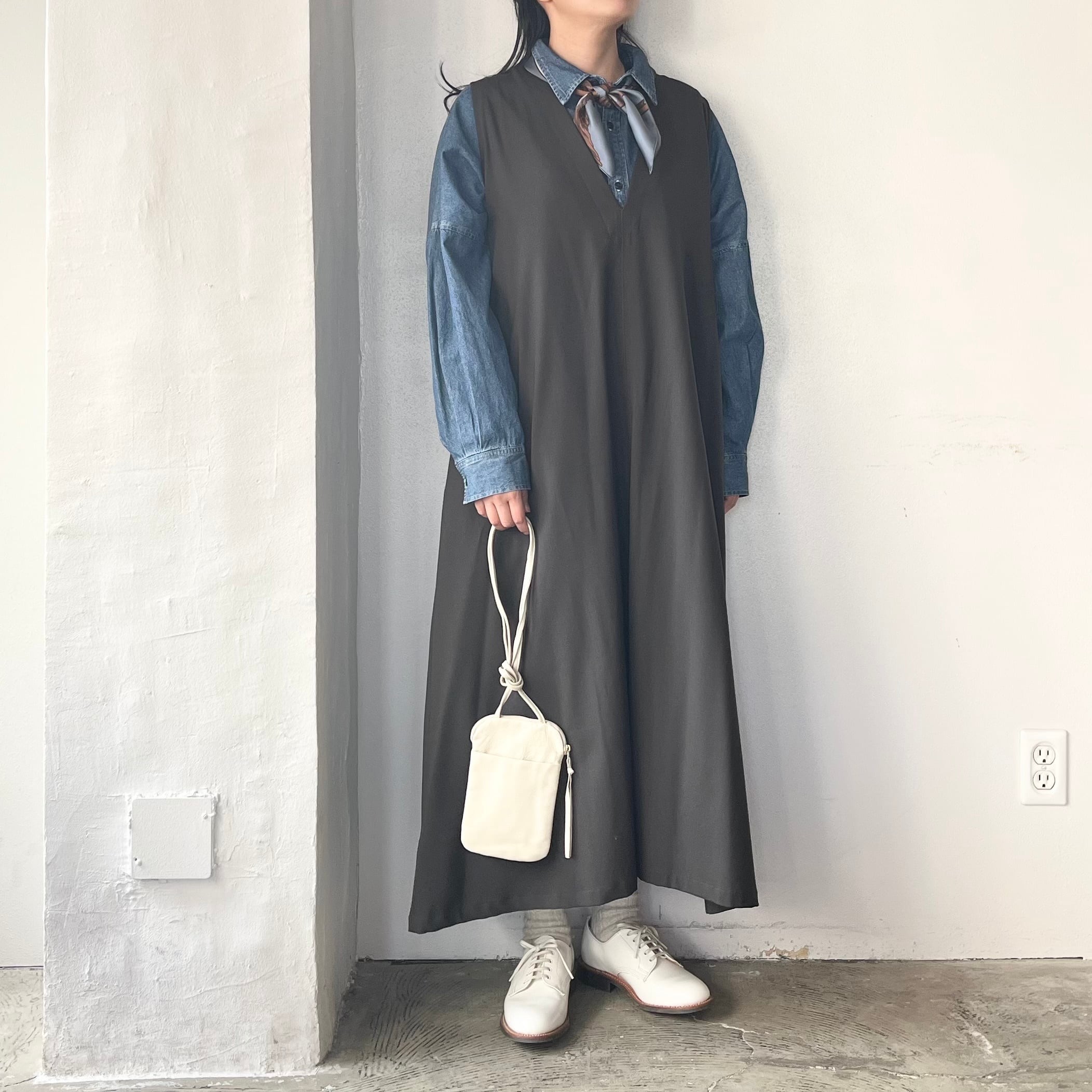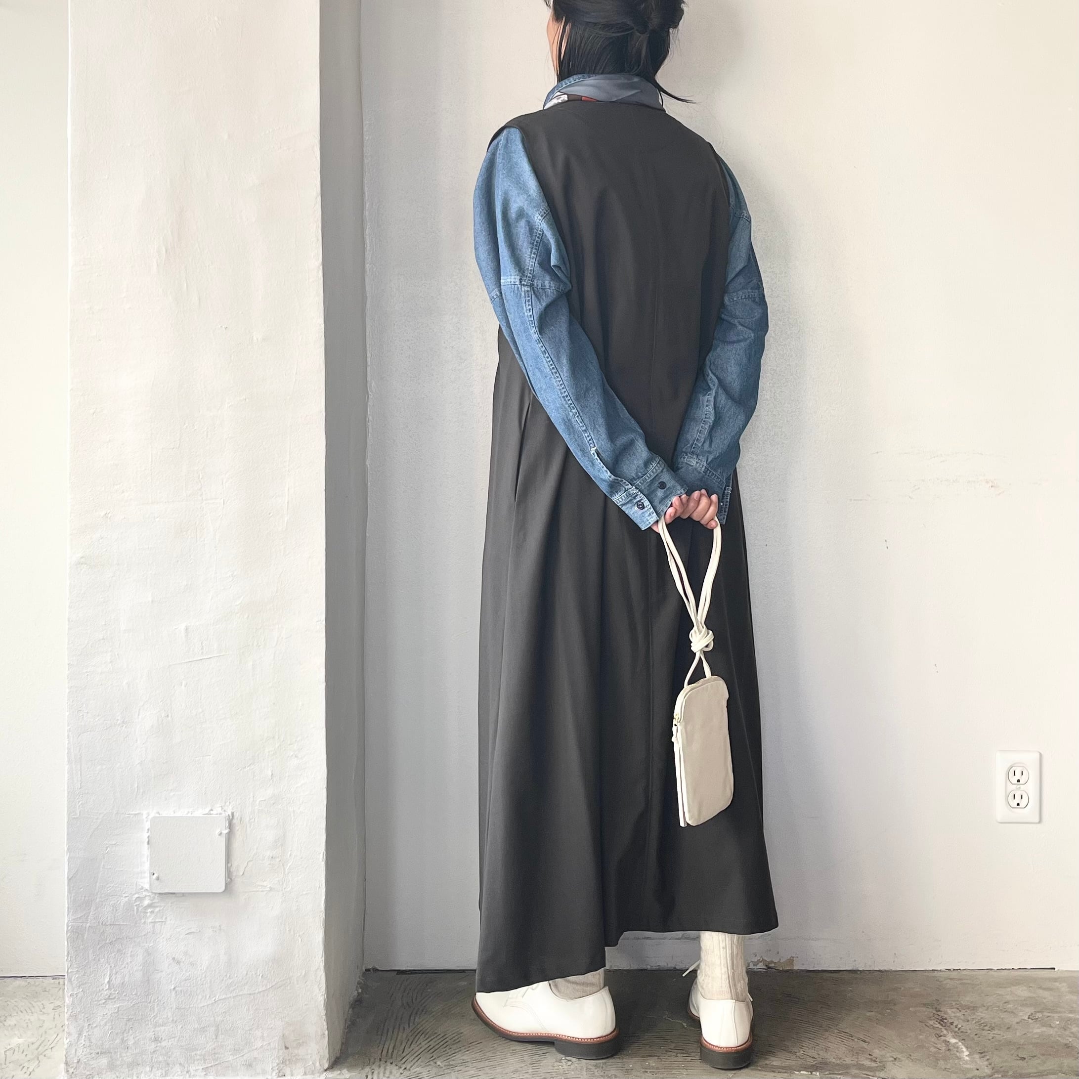 ○Honnete Sleeveless V Wide Dress Cordura mix Wool Serge(スリーブレス V ワイドドレス コーデュラミックスウールサージ)