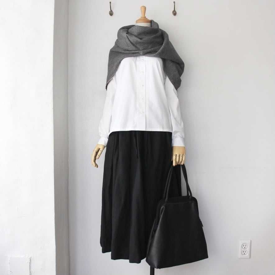 肩からかけたり、首元にぐるりと巻いたり、応用範囲の広いアイテム