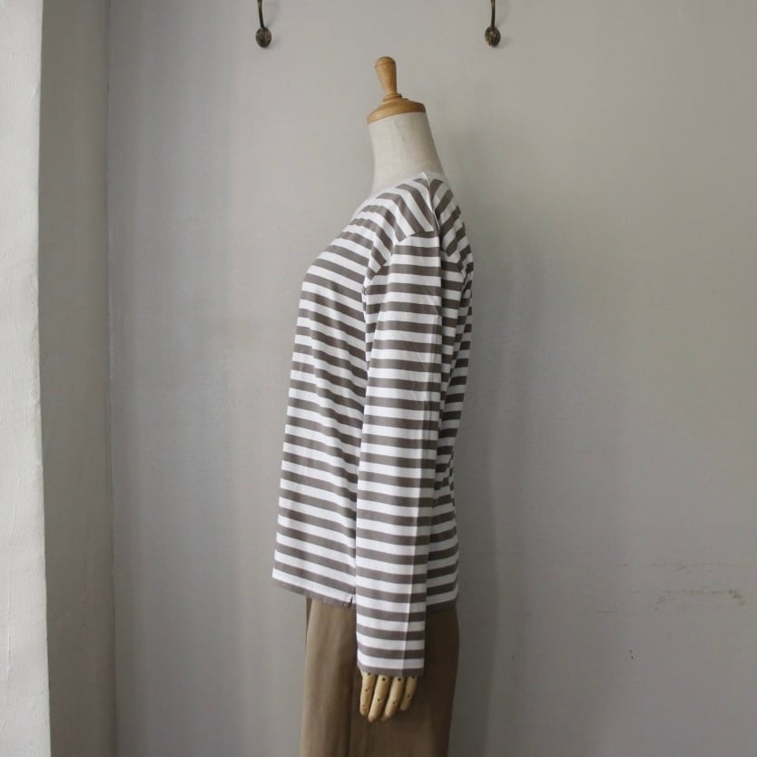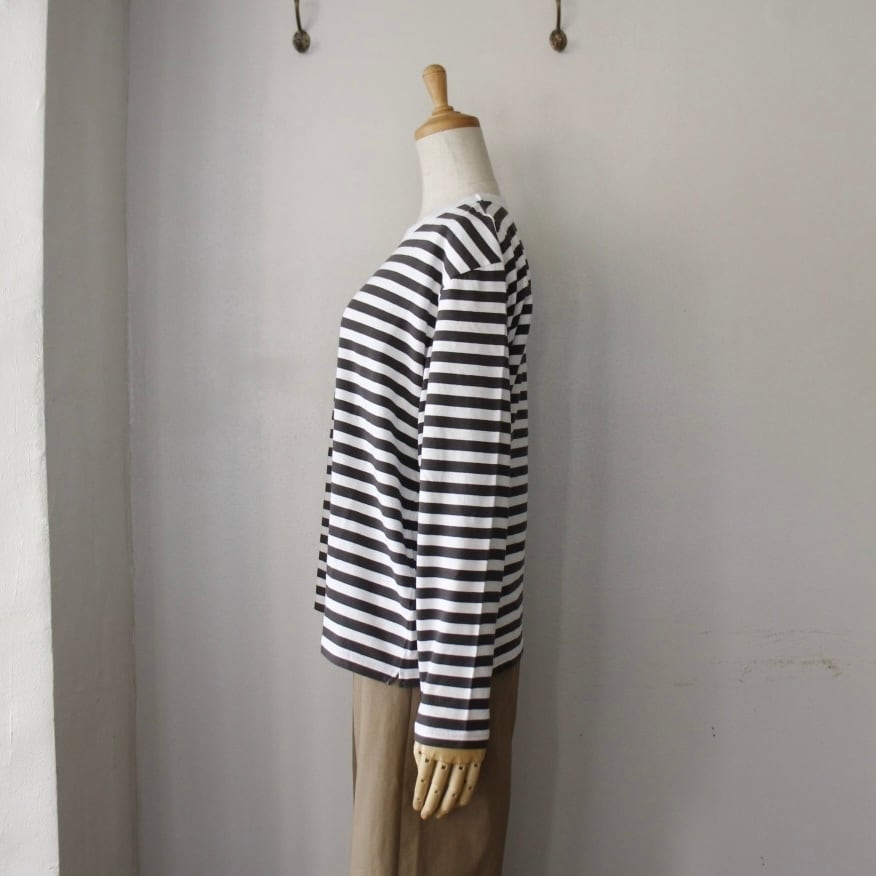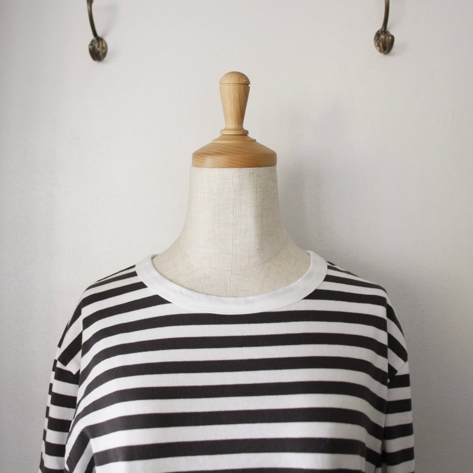 特別な番手の糸を使用し、独自に編まれた12mm幅のボーダーは、大人の女性にも似合う幅です