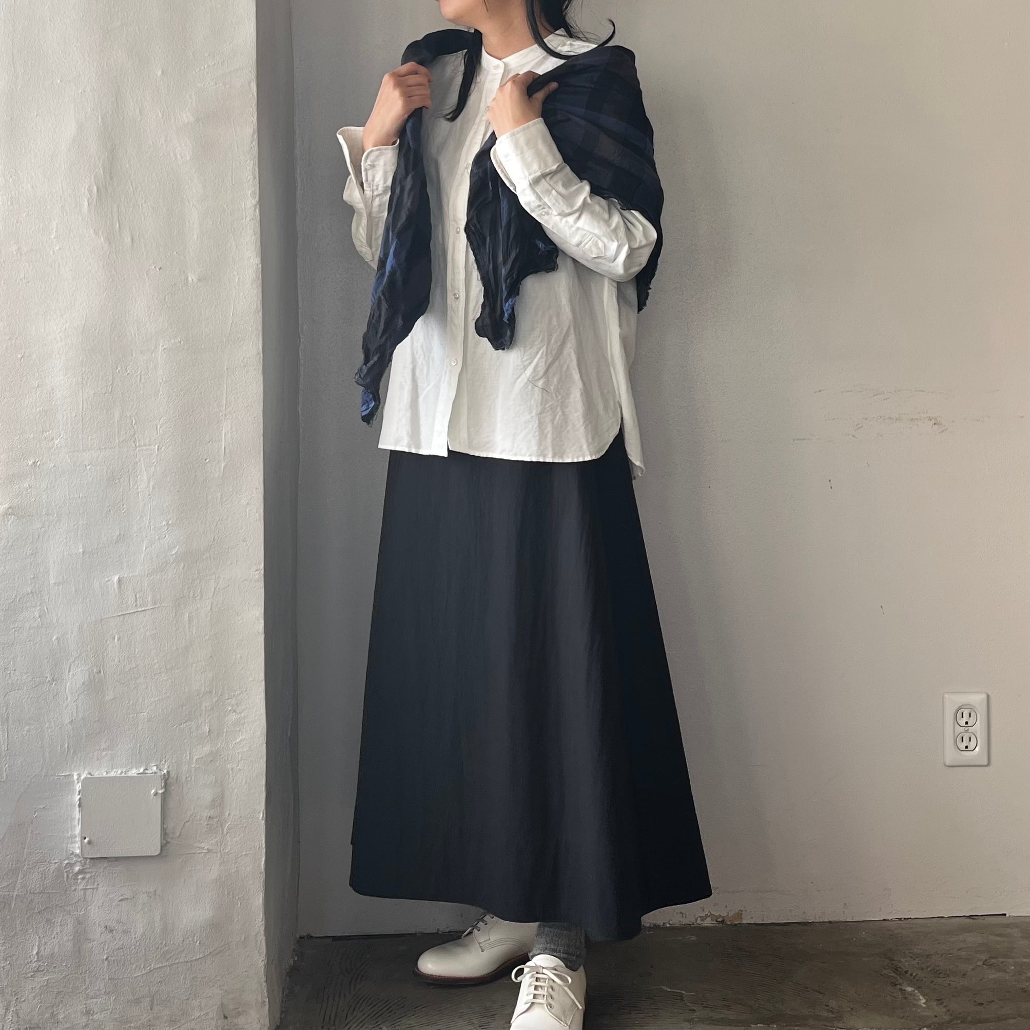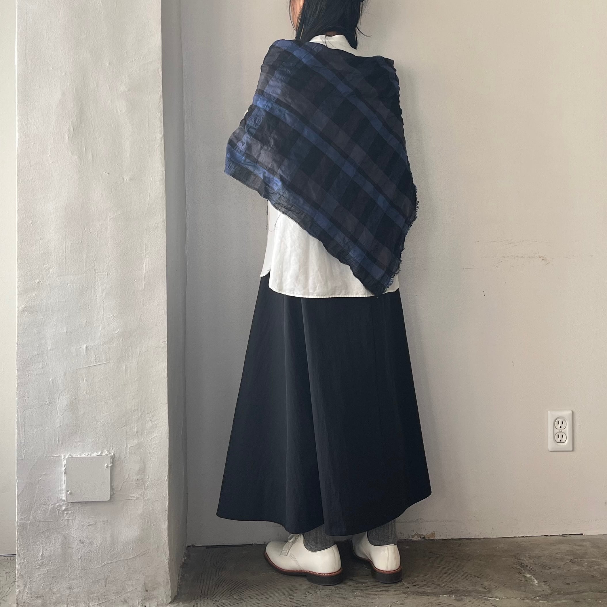 ○Honnete Wide Stole Shirring Check(ワイドストール シャーリングチェック)