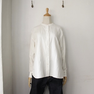 HAND ROOM WOMEN'S コットンヘンプ バンドカラーシャツ