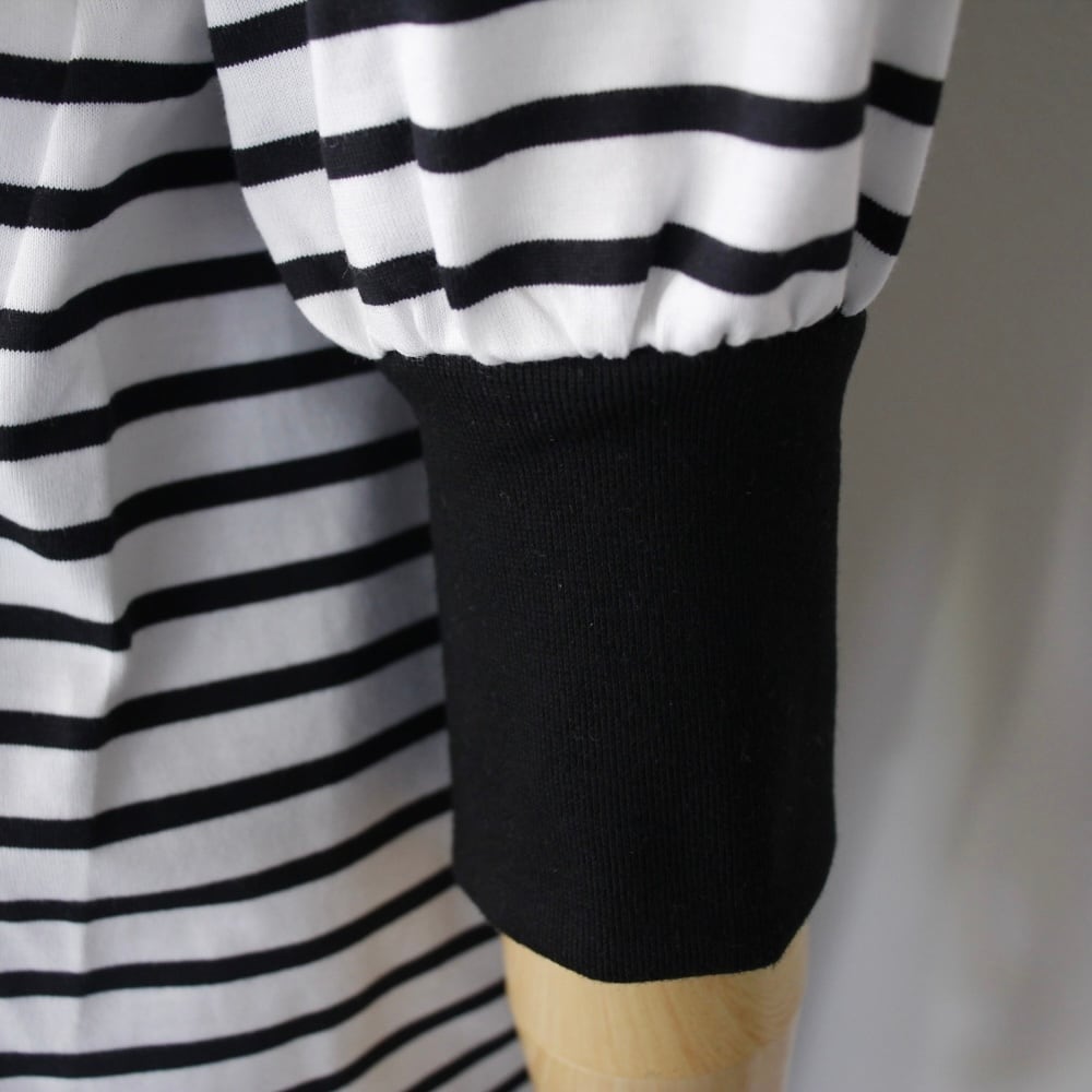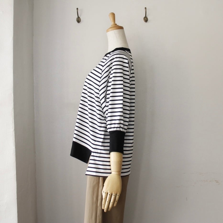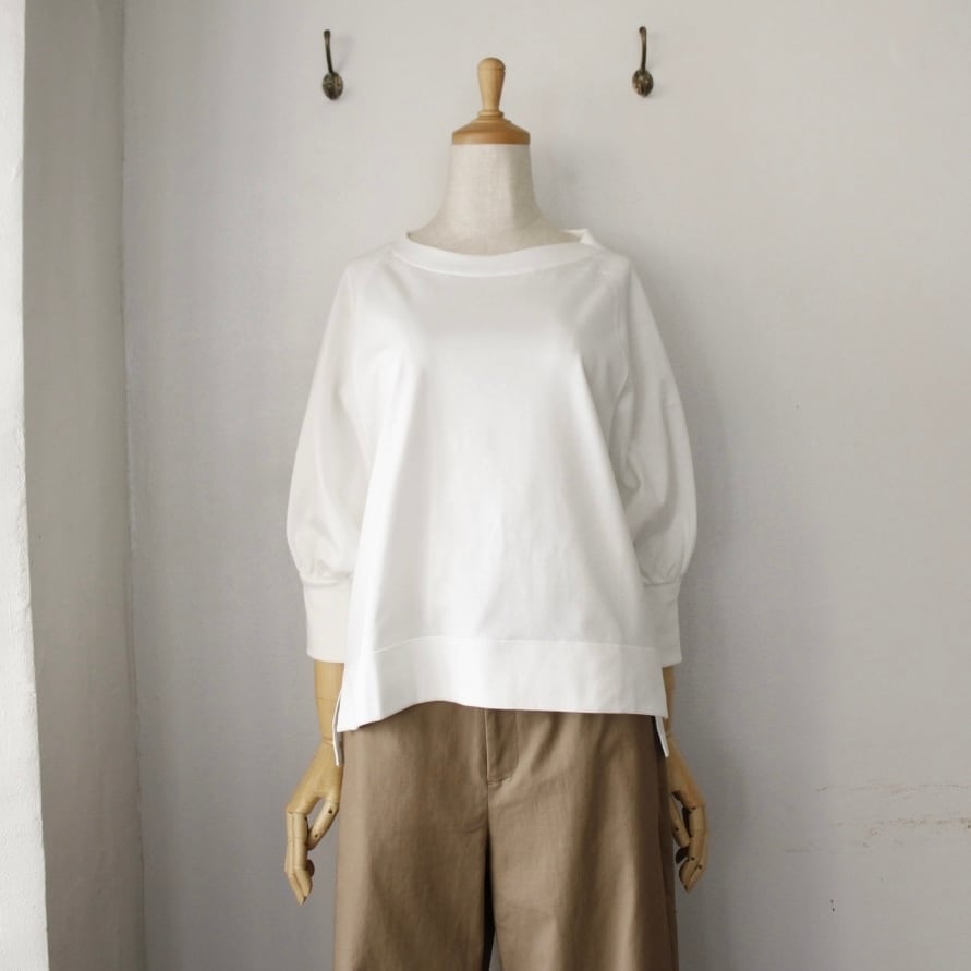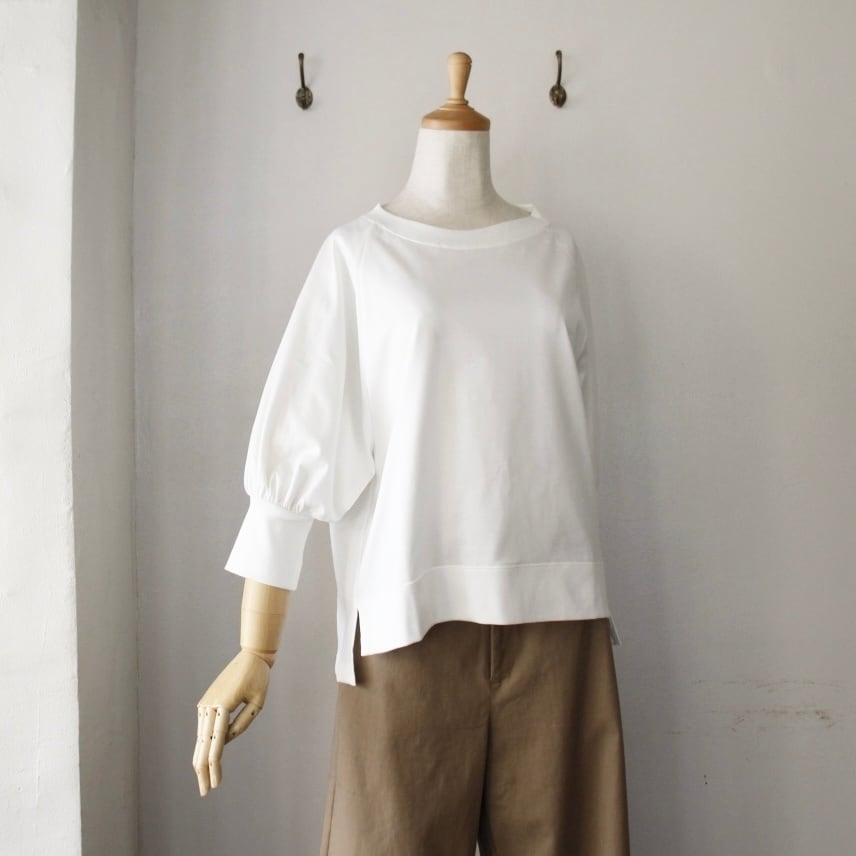 シンプルながらも品のある7分袖のパフスリーブは