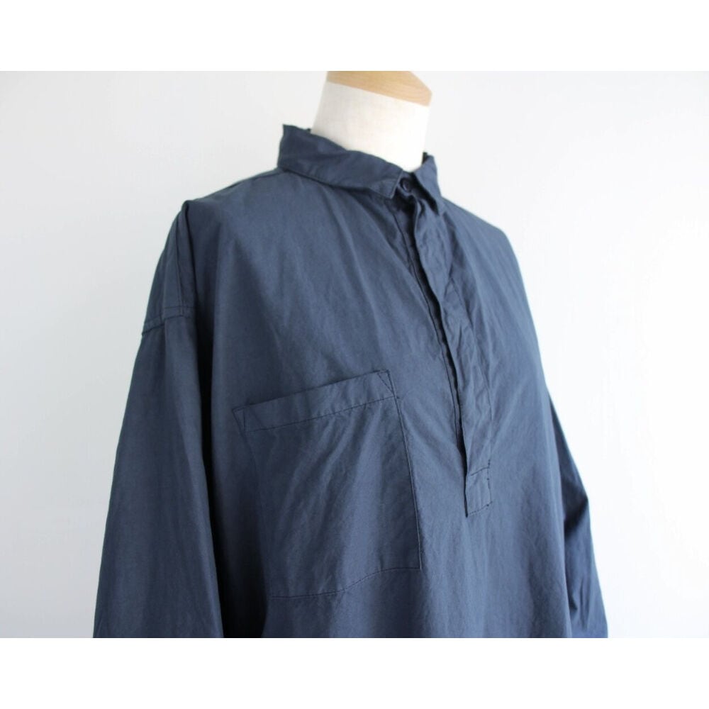 比翼仕立ての、プルオーバータイプのロングシャツワンピース