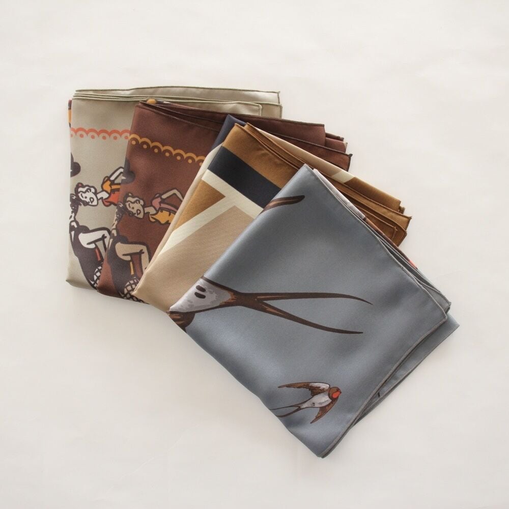 ピースオブシックのスカーフはどれも、美しい発色と肌あたりの気持ちよさ、そして特徴のあるモチーフに定評があります