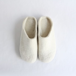 Hemskor 羊毛フェルトルームシューズ(踵なし・ナチュラルホワイト)24cm