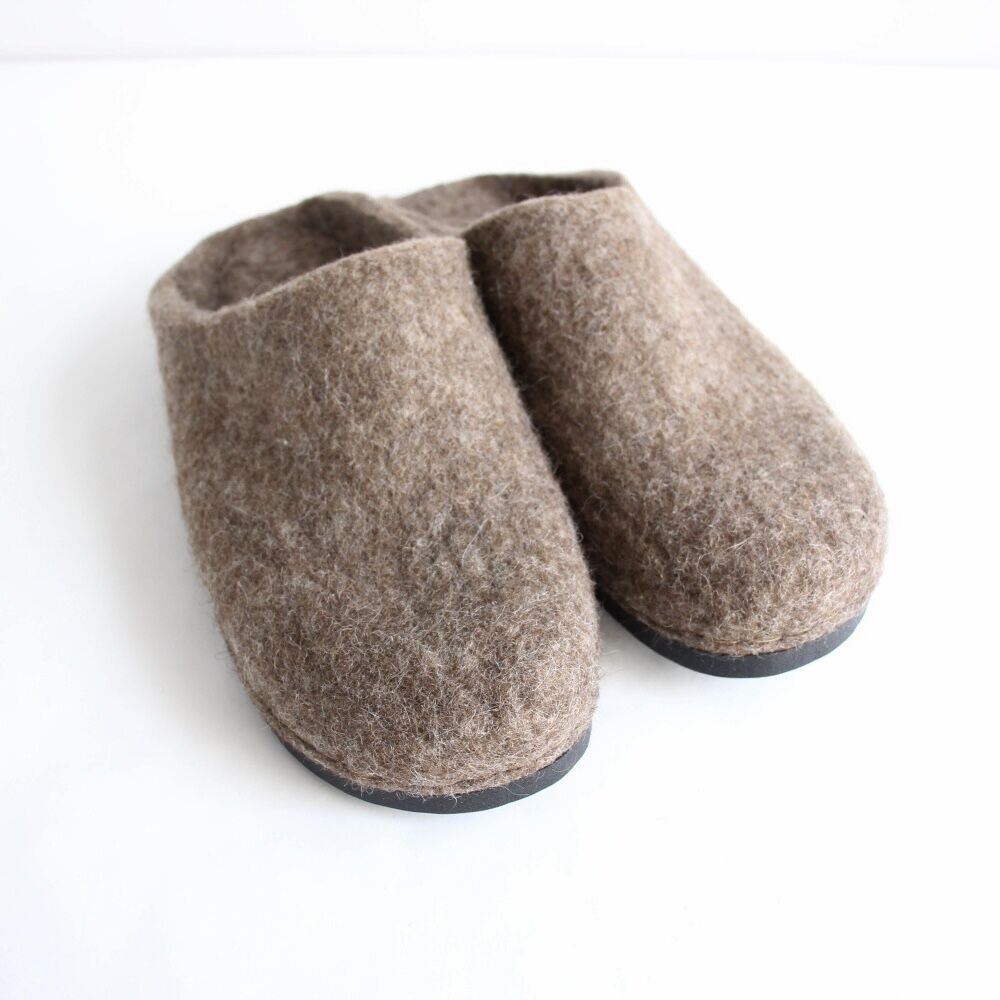 世界中に数ある中から毛玉になりにくく肌触りの良い羊毛を厳選し、水とオリーブローレル石鹸のみでフェルト化させた「ルームシューズ」