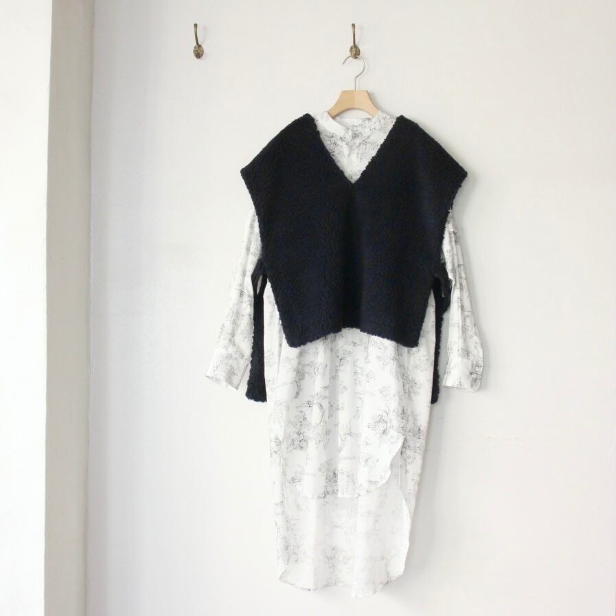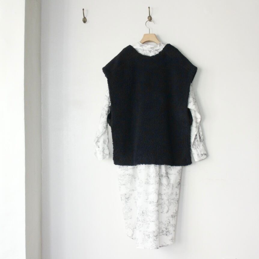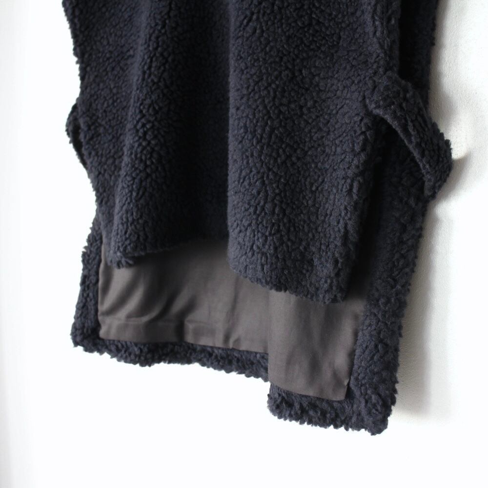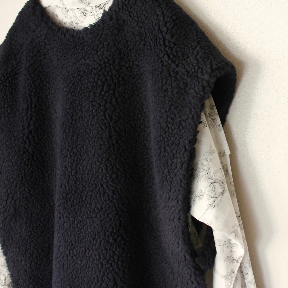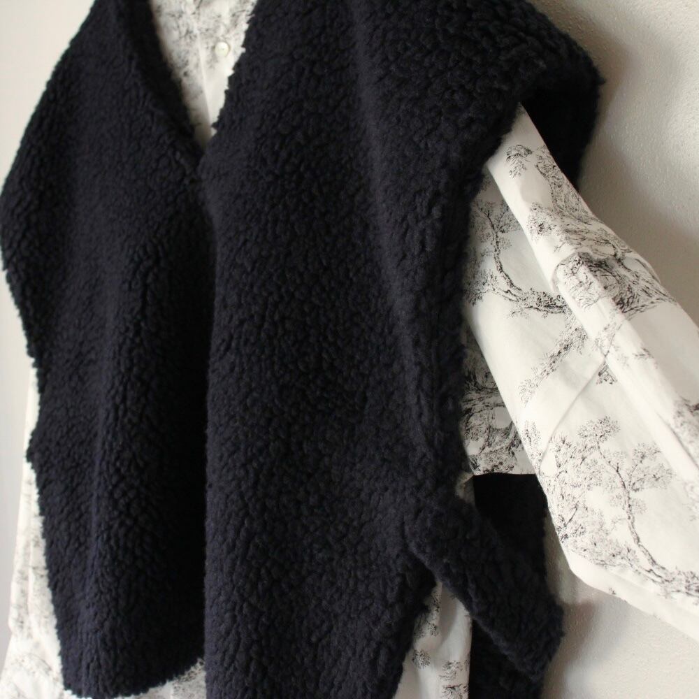 あたたかみのあるボア生地で作られた布帛(織物)の「サイドオープンベスト」