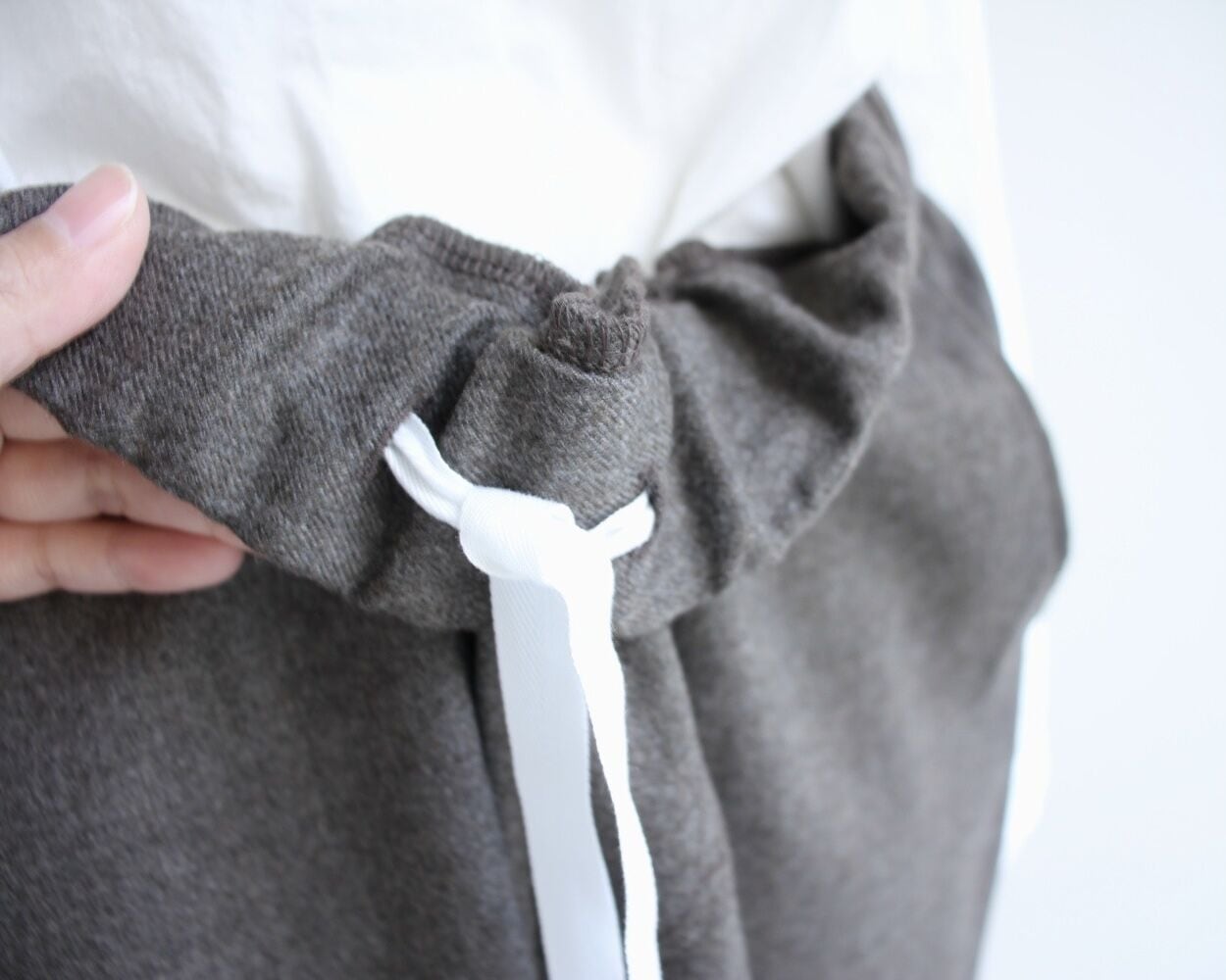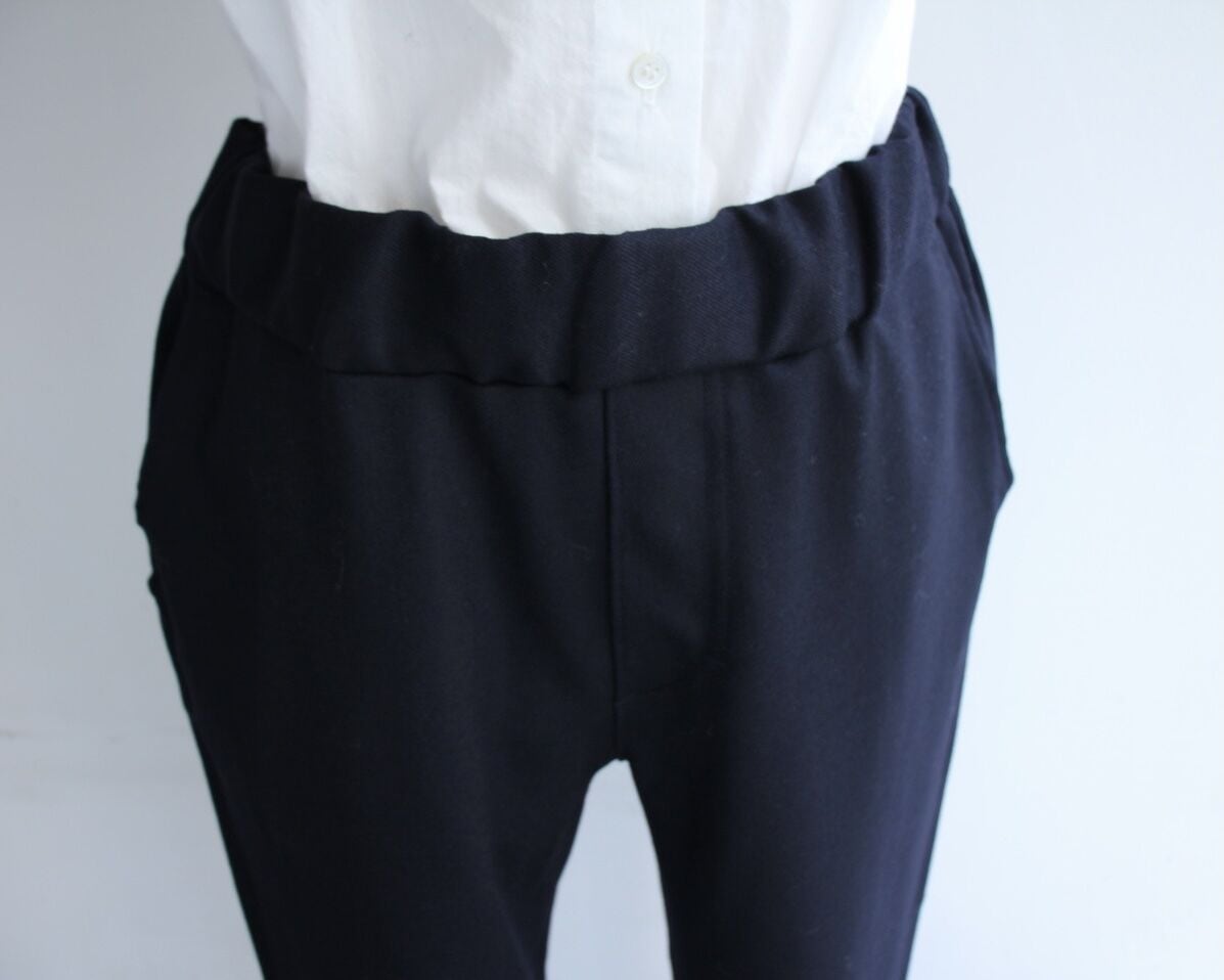 すっきりしたかたちと、ウエストがゴムと紐で履き心地抜群の、秋冬におすすめのスリムパンツ