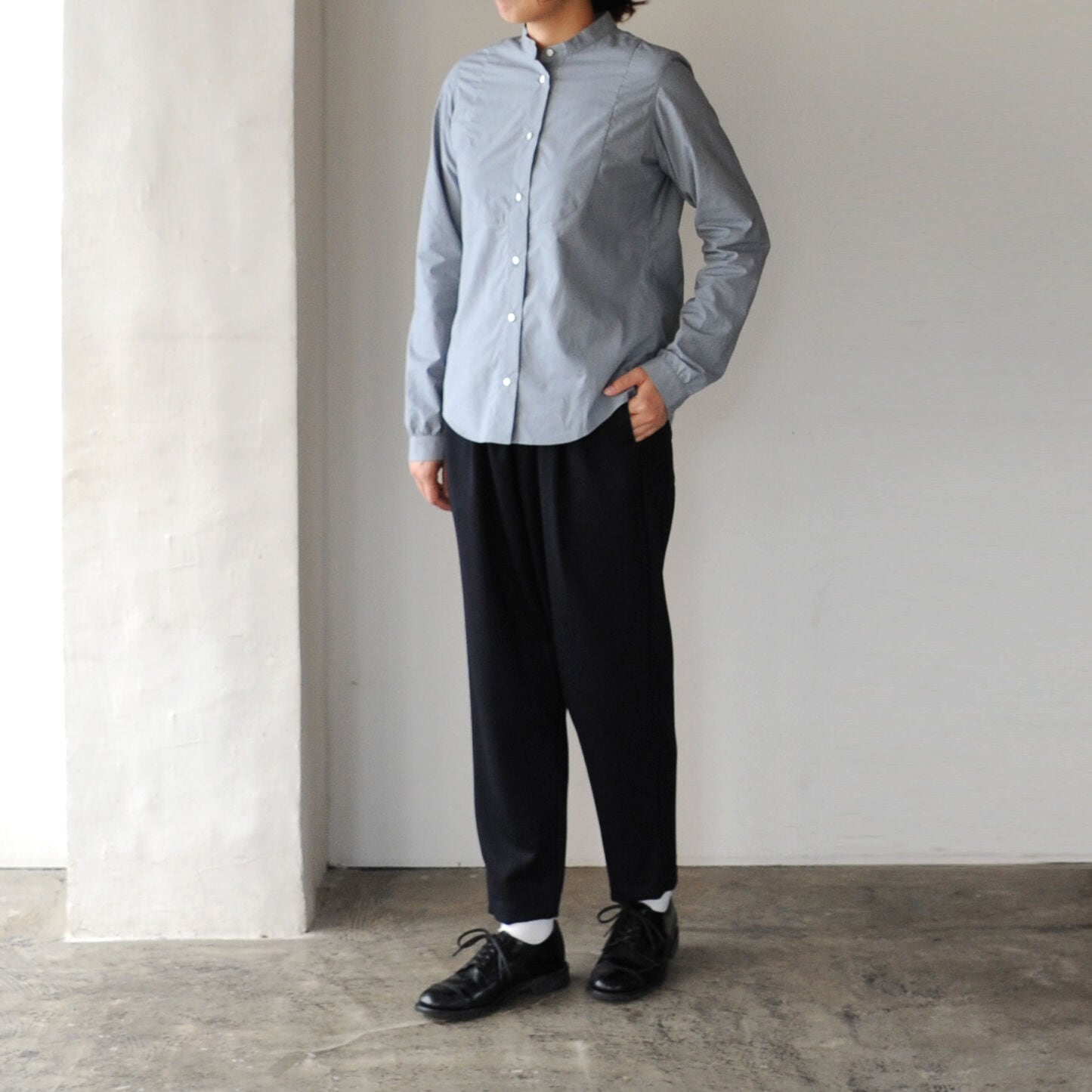 裾に向かってテーパードがかかっている9分丈なので、チュニックなど丈が長めのトップスとも好相性です