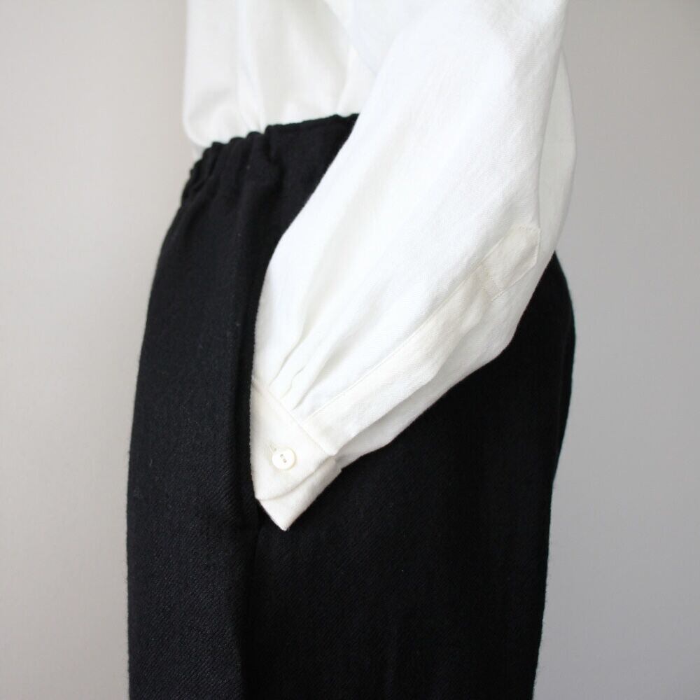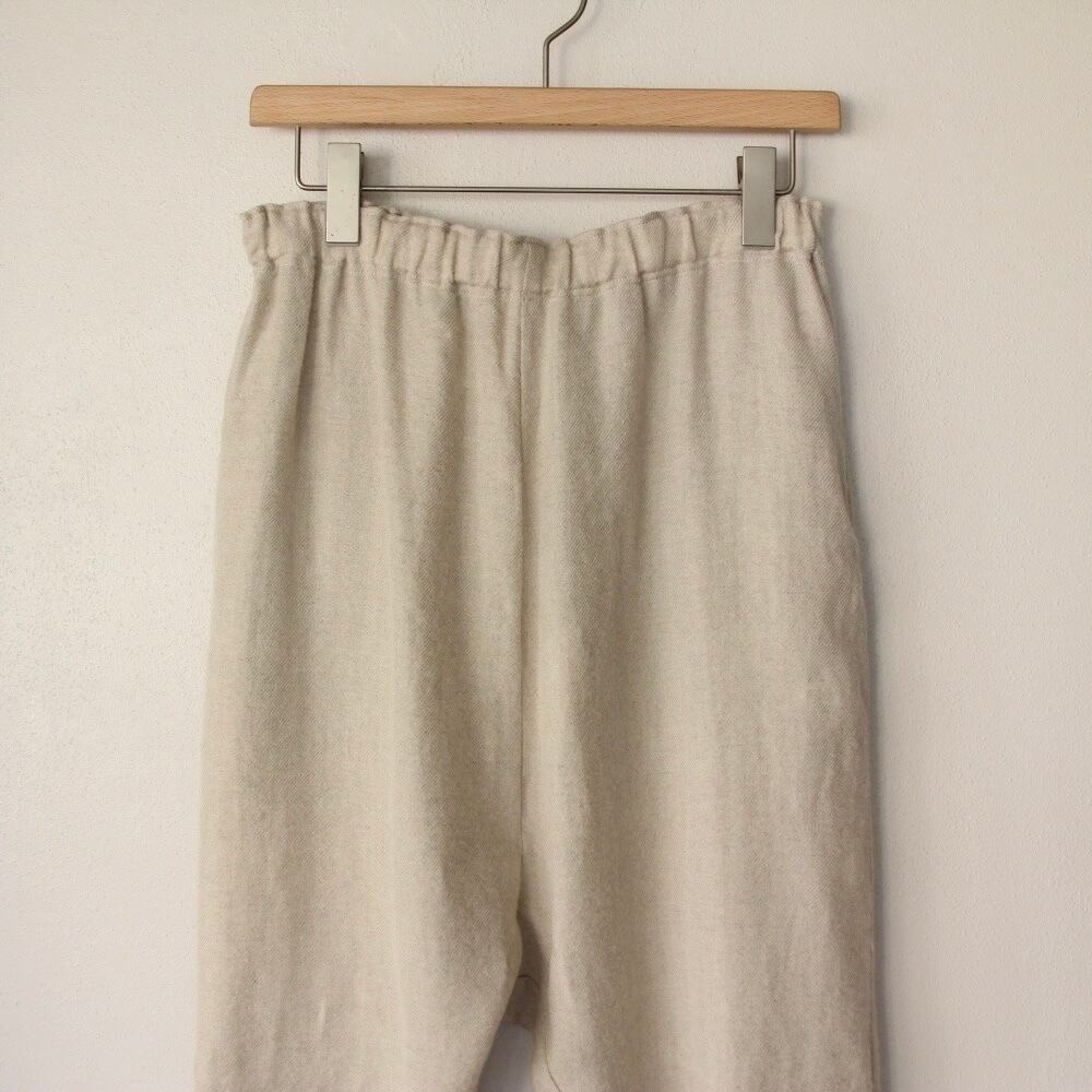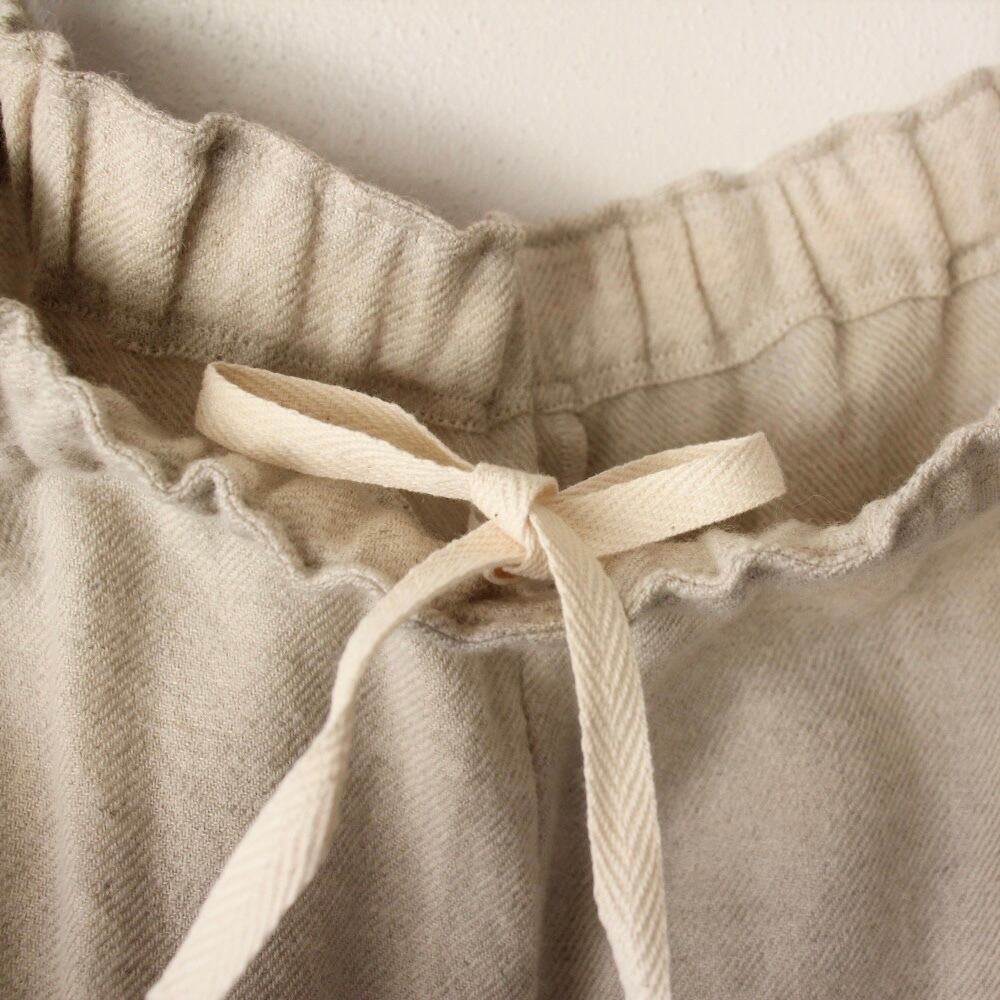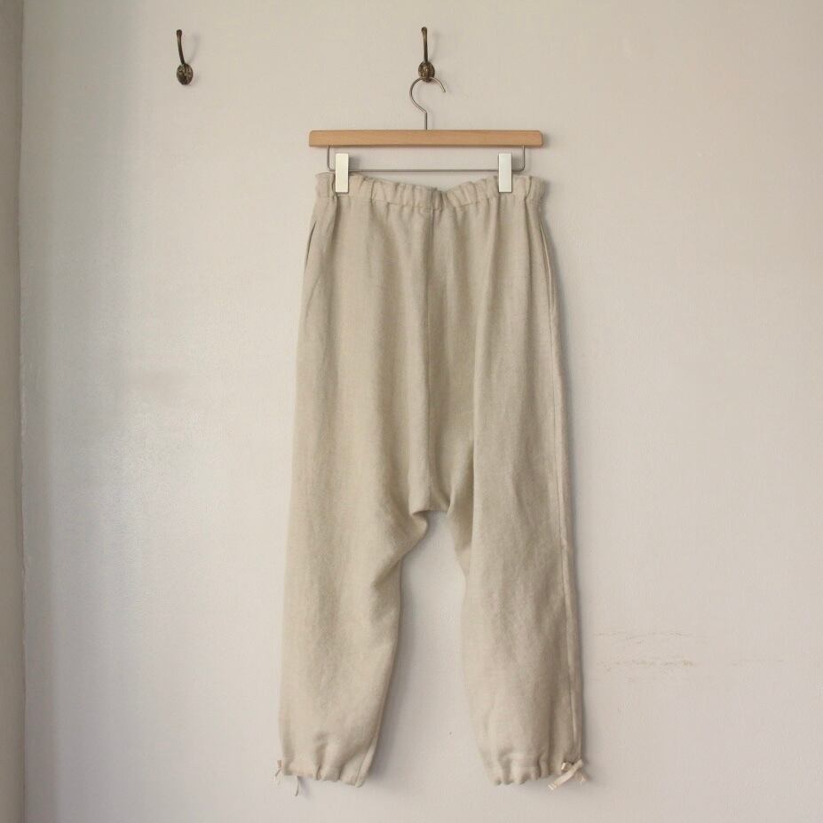 柔らかくシャリ感のあるウールリネン生地を使用したリラックス感たっぷりの「ドロップヒップパンツ」